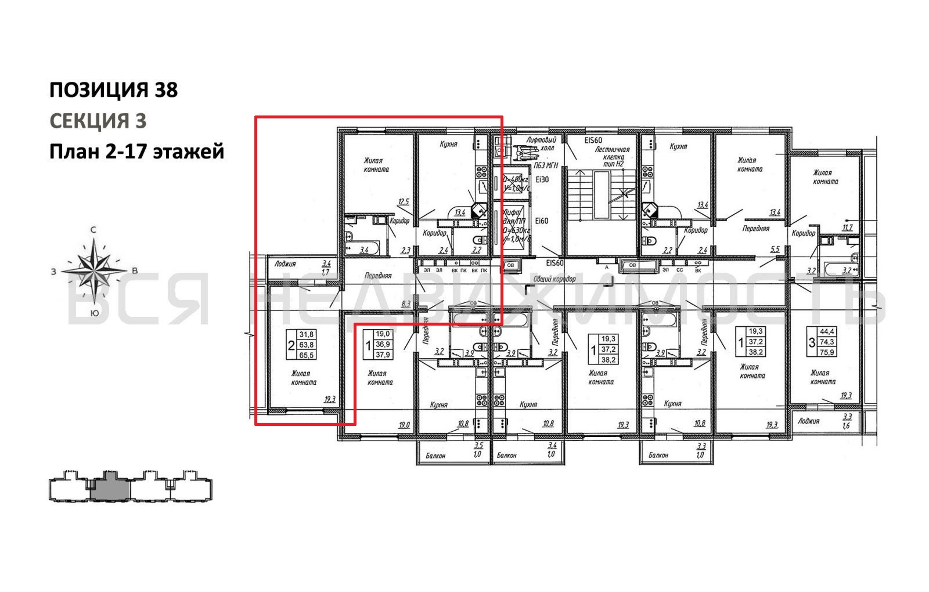 2-комнатная квартира, 65.50 м² 15/17 этаж ID объекта 100129302