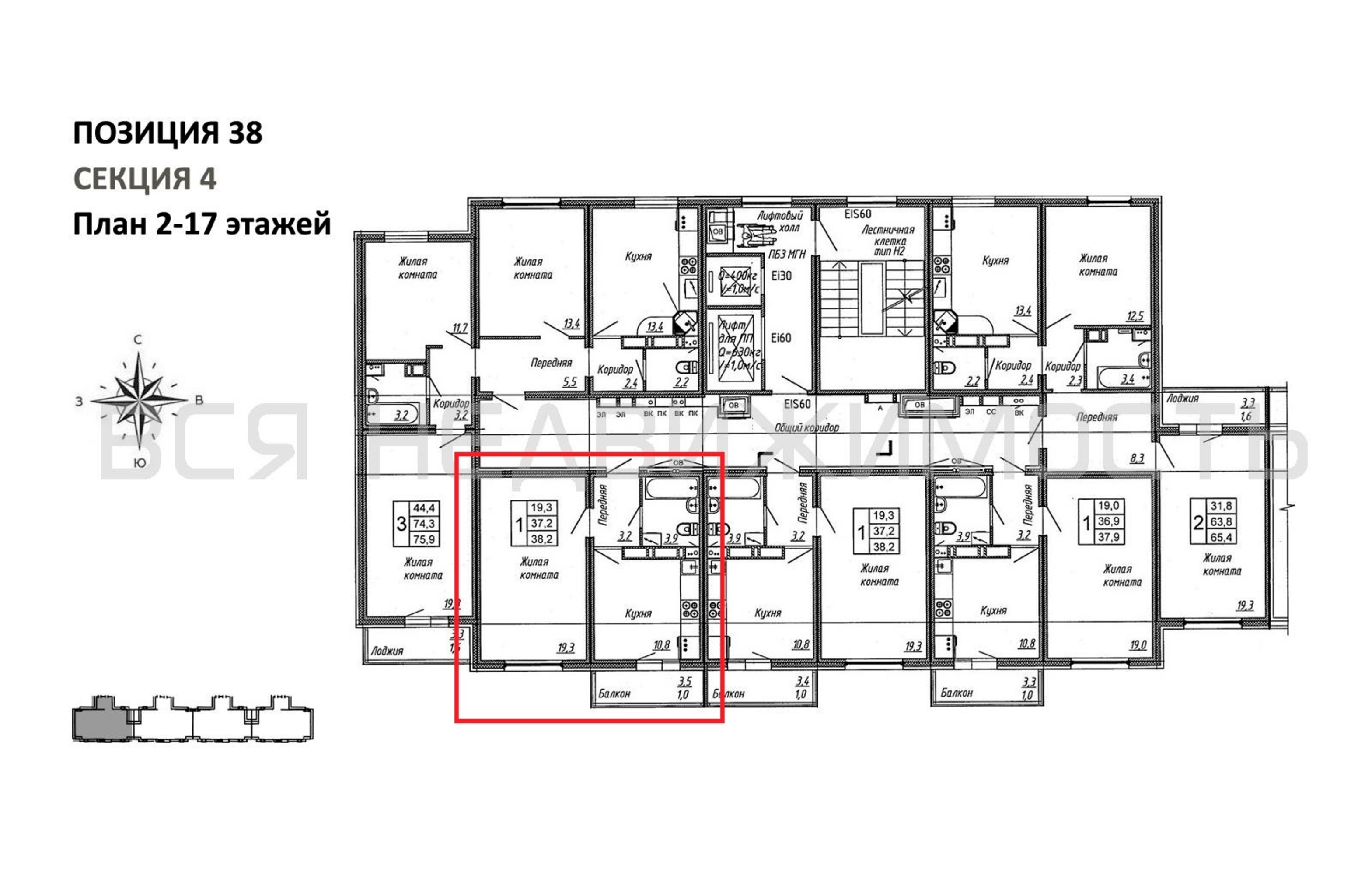 1-комнатная квартира, 38.20 м² 11/17 этаж ID объекта 100129366