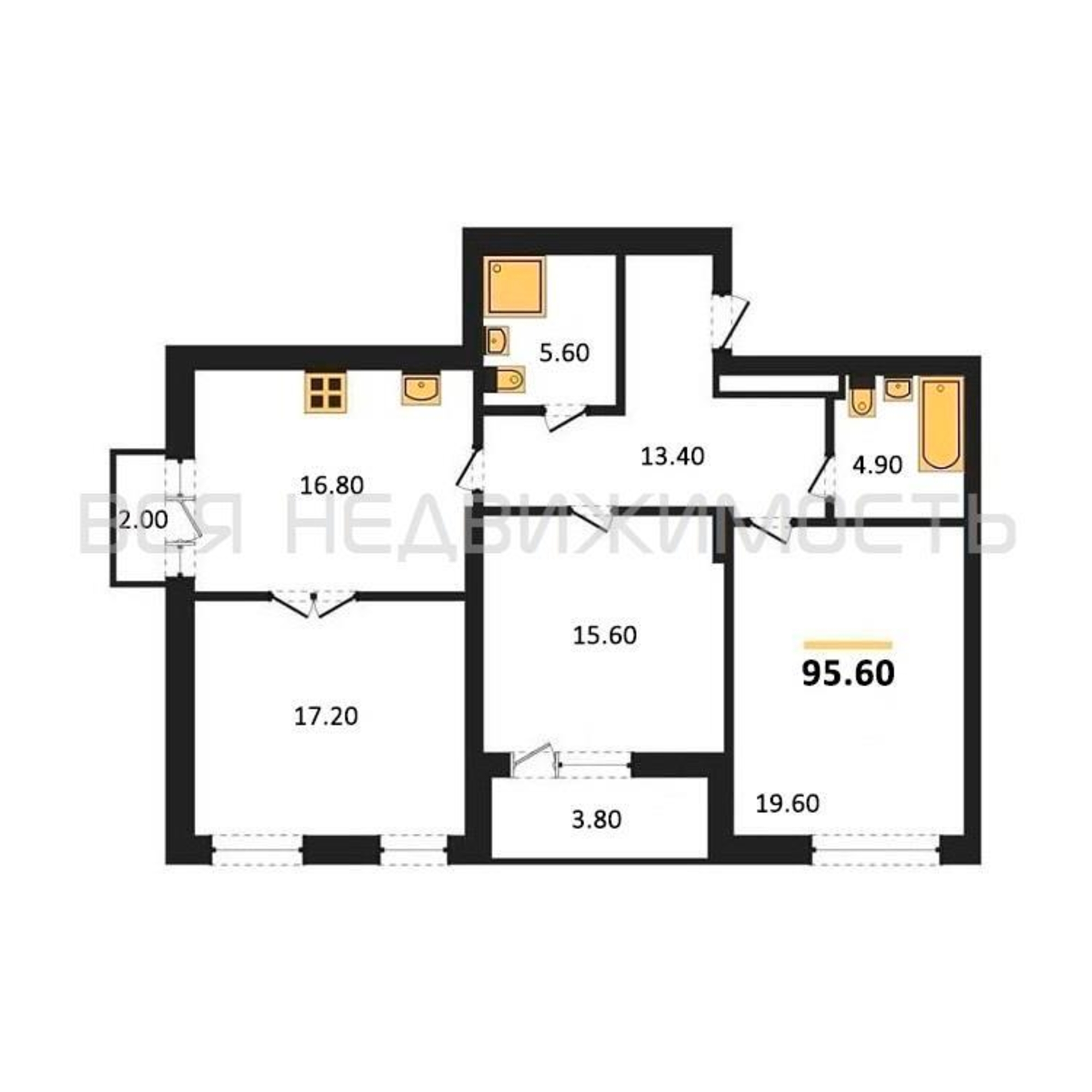 3-комнатная квартира, 95.60 м² 2/25 этаж ID объекта 100129406
