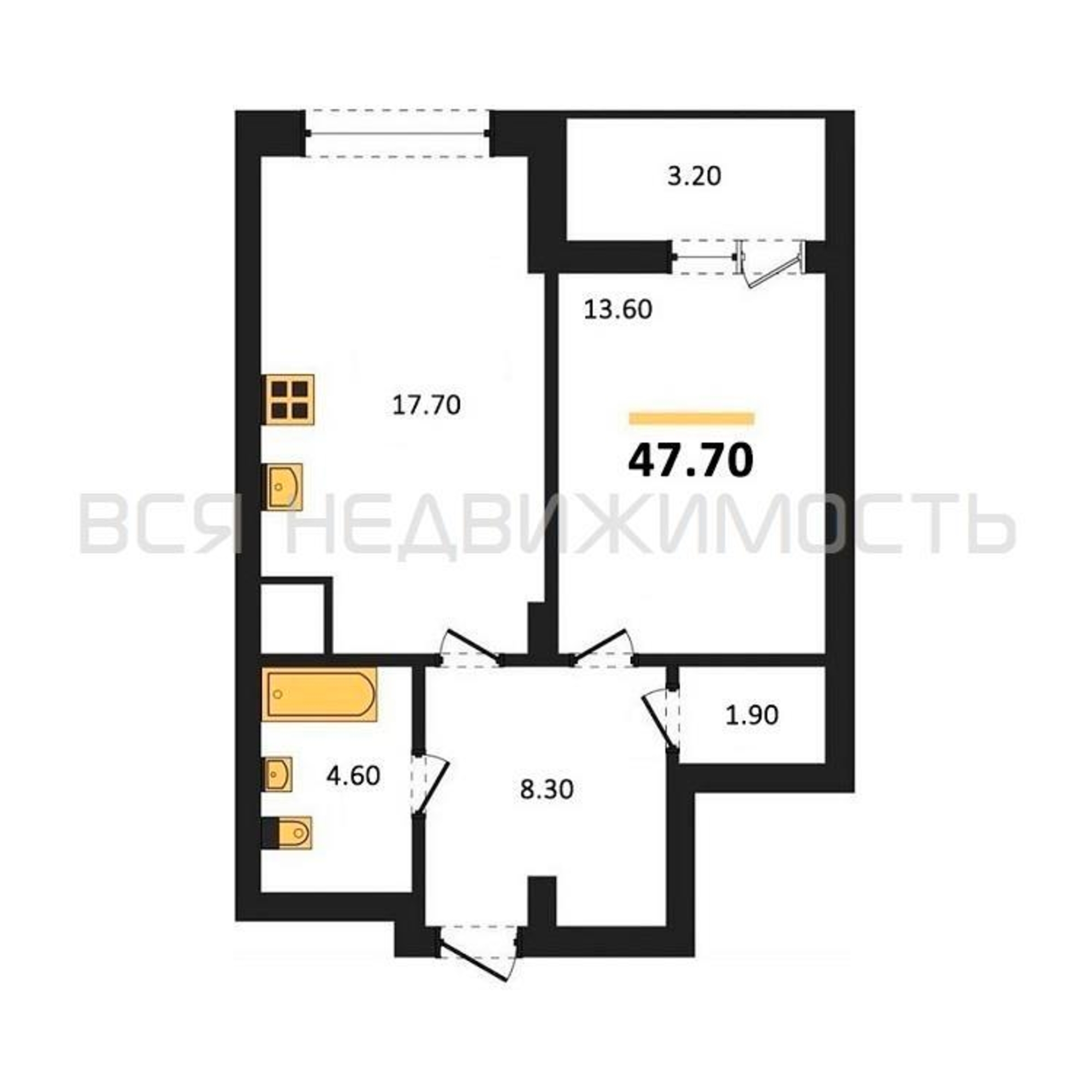 1-комнатная квартира, 47.70 м² 4/25 этаж ID объекта 100129424