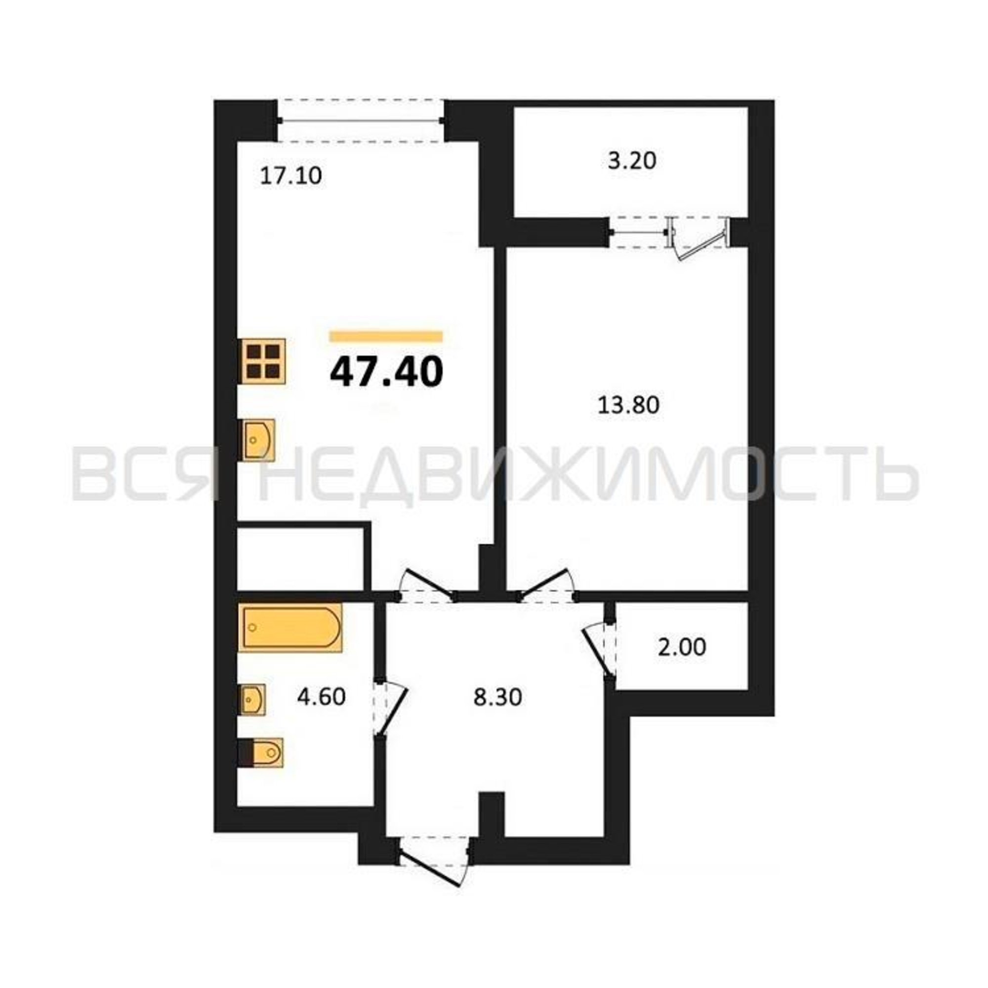Строительная площадь47.40 м²