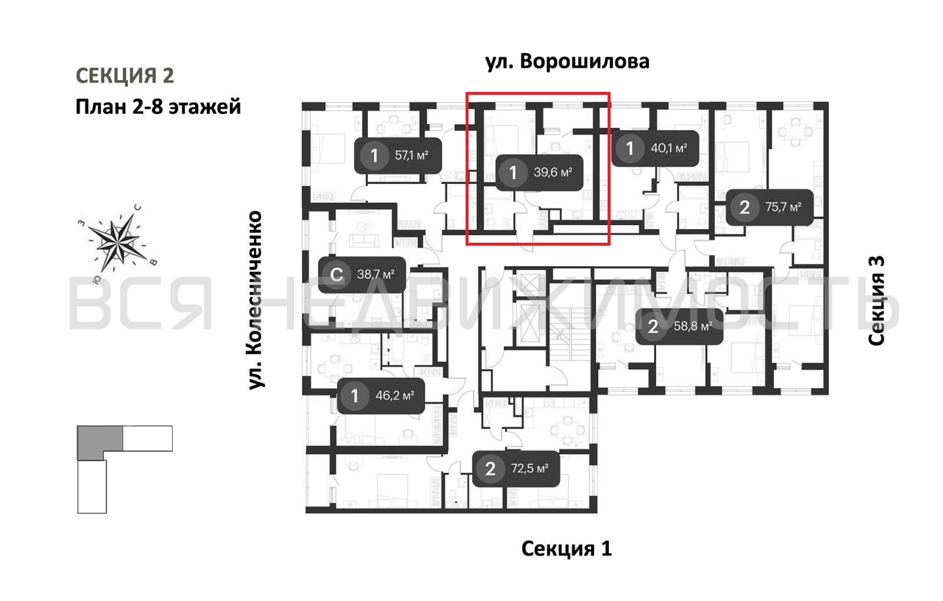 1-комнатная квартира, 39.60 м² 2/25 этаж ID объекта 100129578