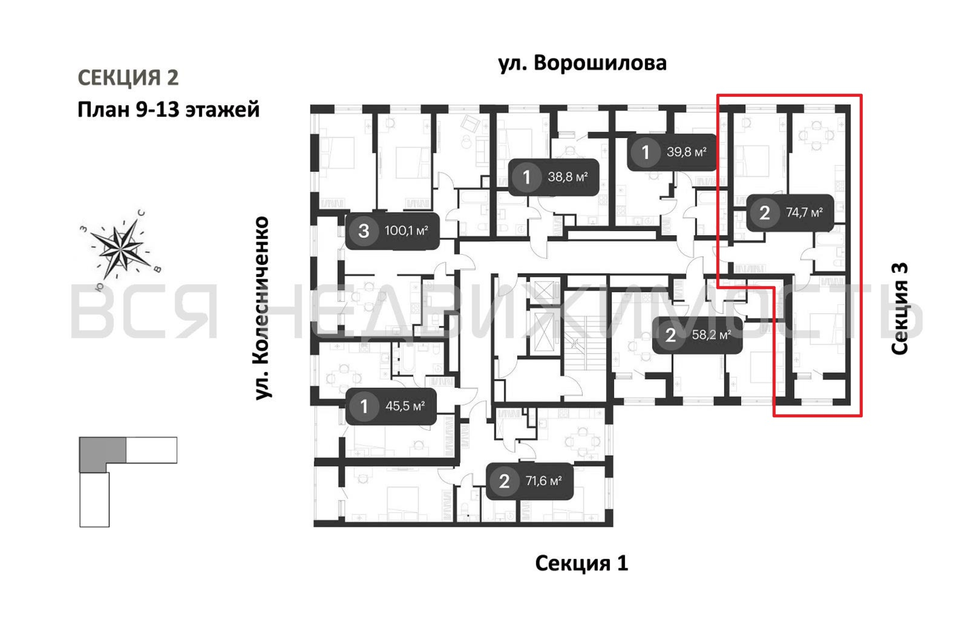 2-комнатная квартира, 74.70 м² 12/25 этаж ID объекта 100129656