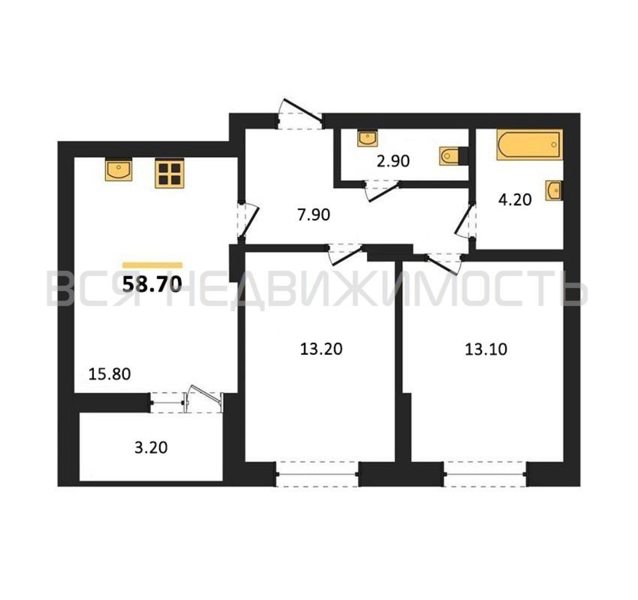 Строительная площадь58.70 м²