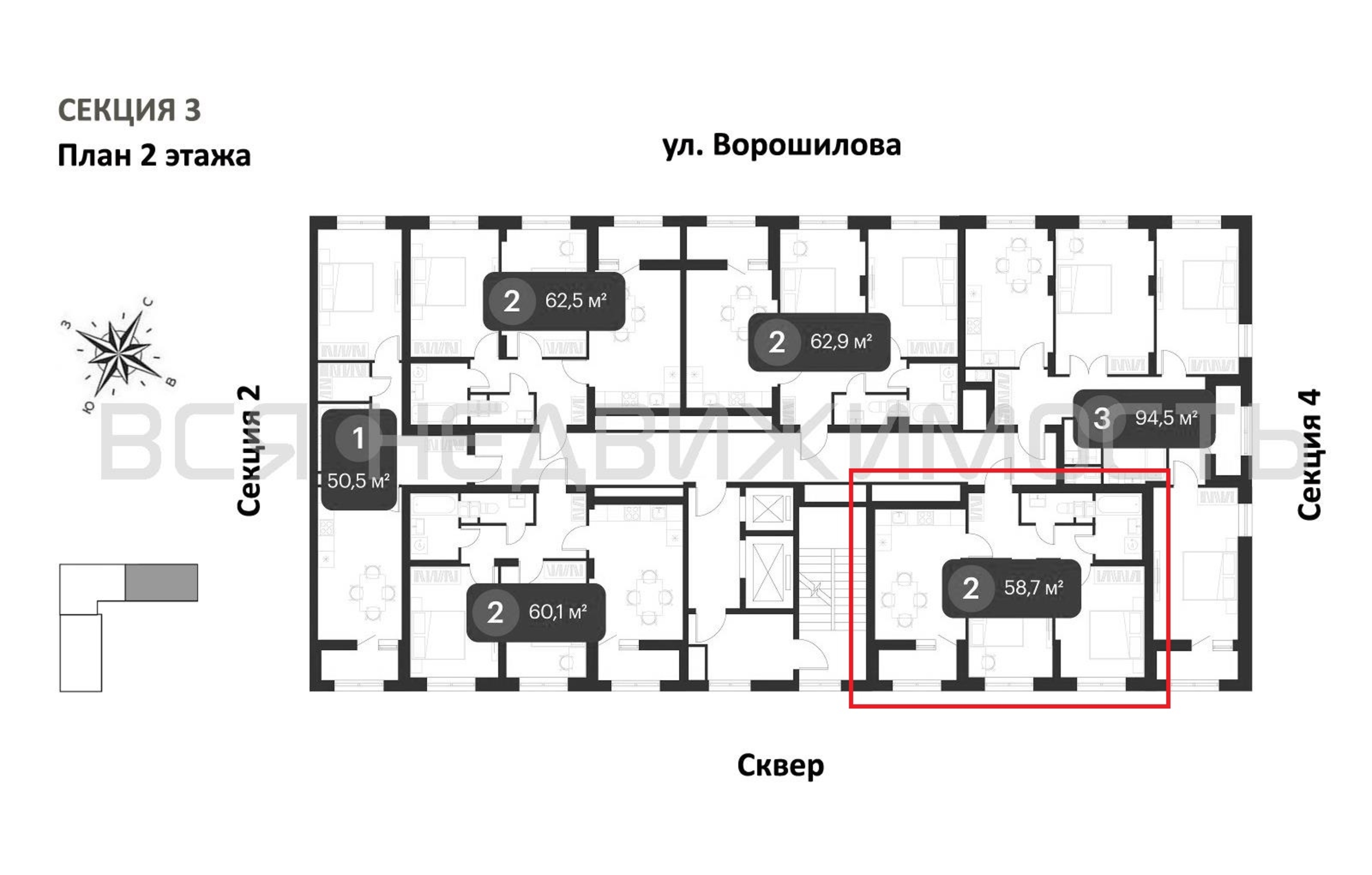 2-комнатная квартира, 58.70 м² 2/25 этаж ID объекта 100129677