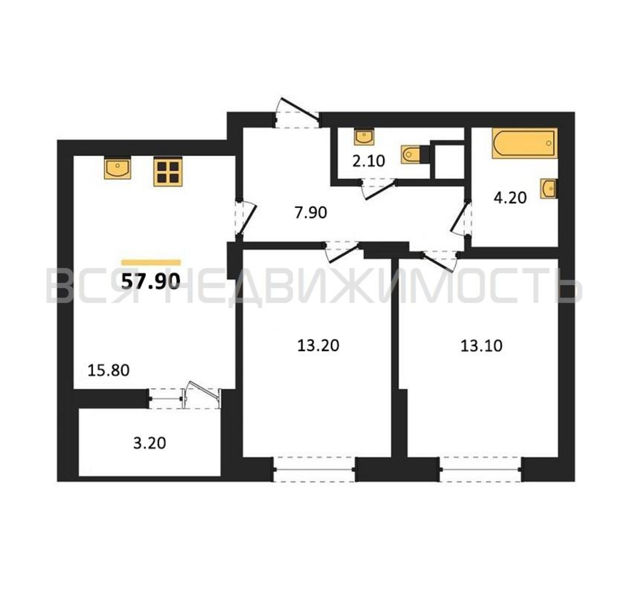 Строительная площадь57.90 м²