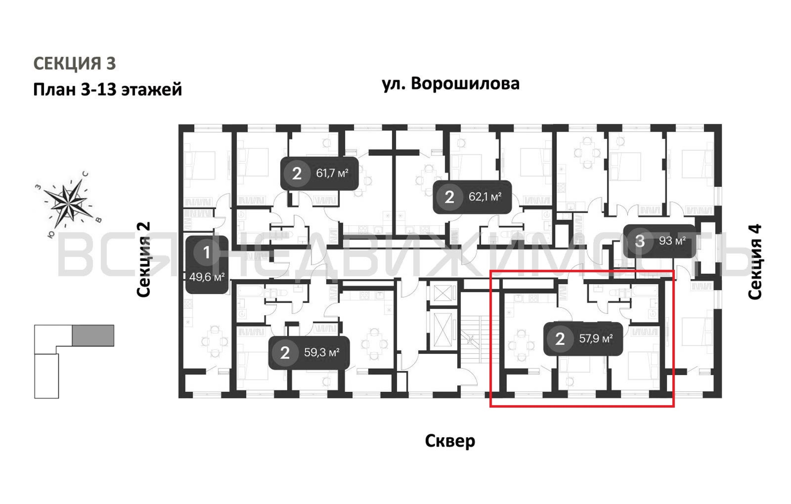 2-комнатная квартира, 57.90 м² 4/25 этаж ID объекта 100129689