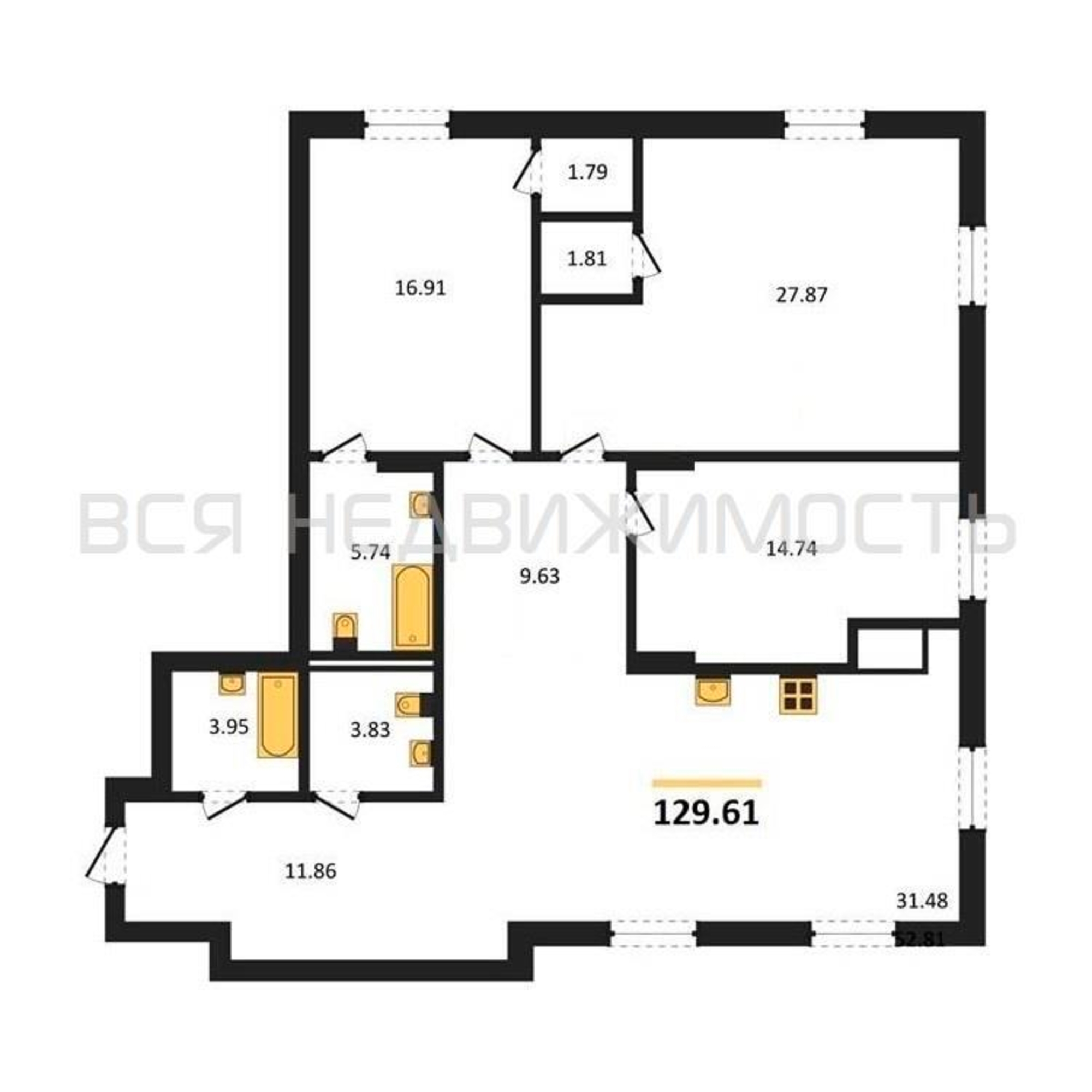 Общая площадь129.61 м²