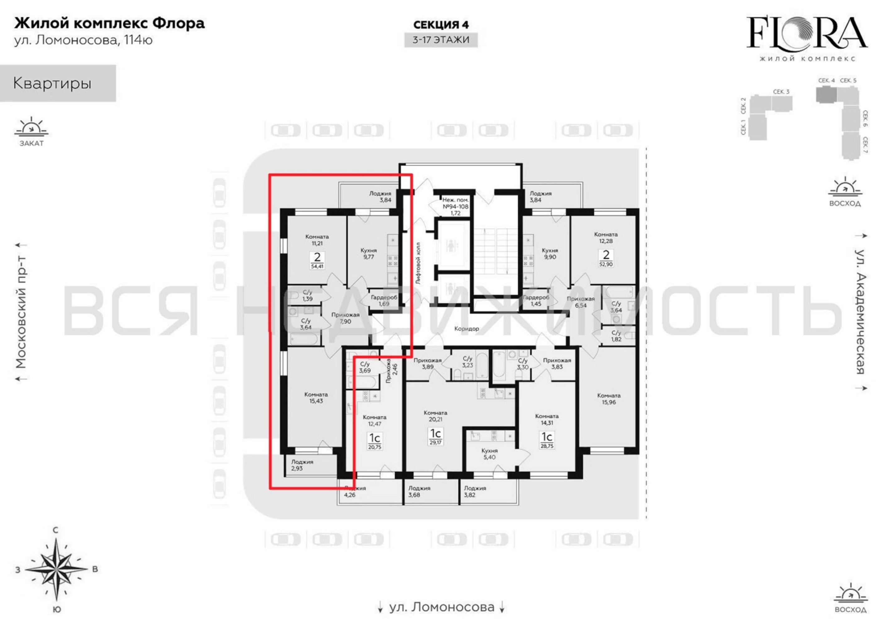 2-комнатная квартира, 54.41 м² 5/17 этаж ID объекта 100130065