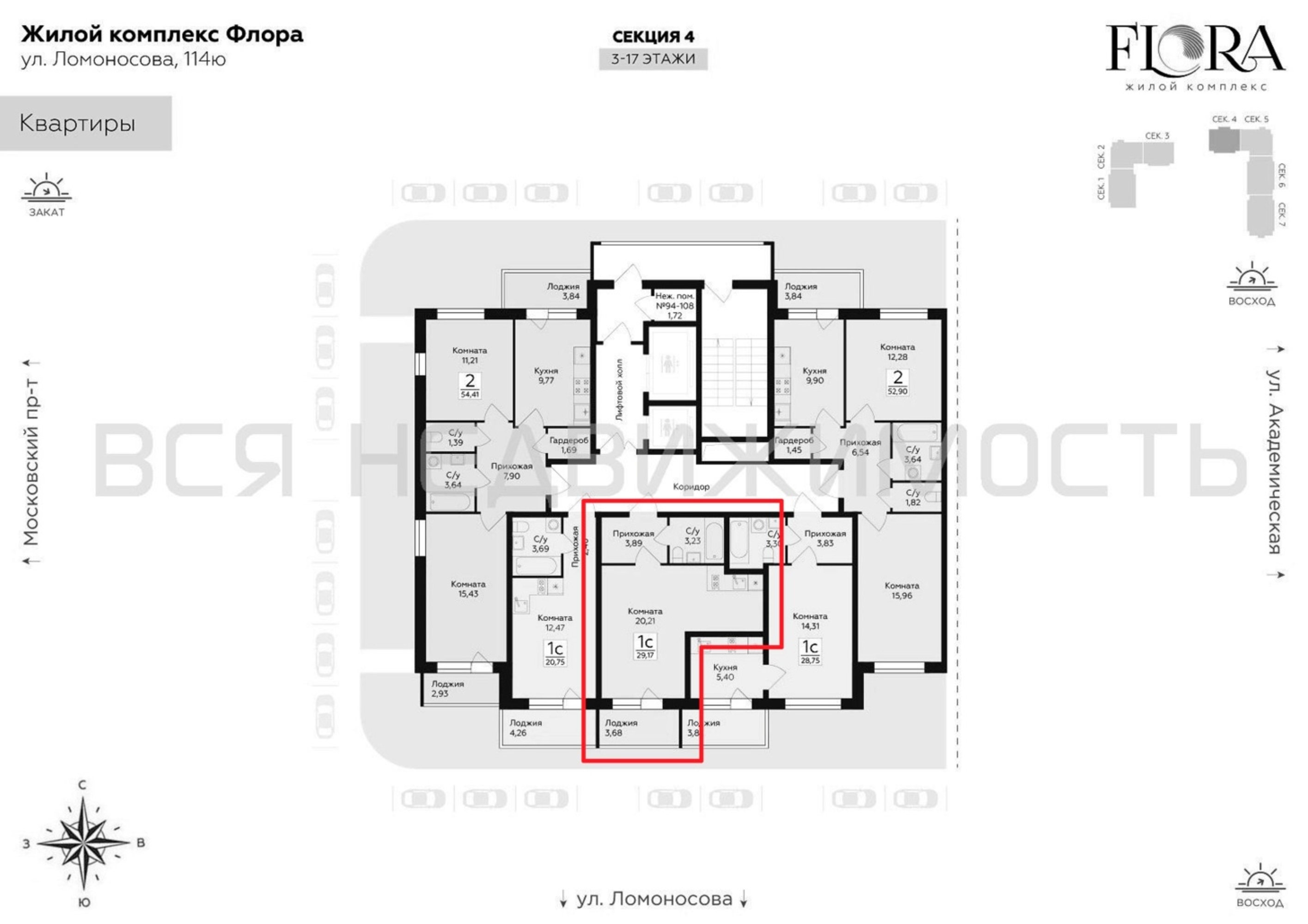 Квартиры-студии, 29.17 м² 13/17 этаж ID объекта 100130103