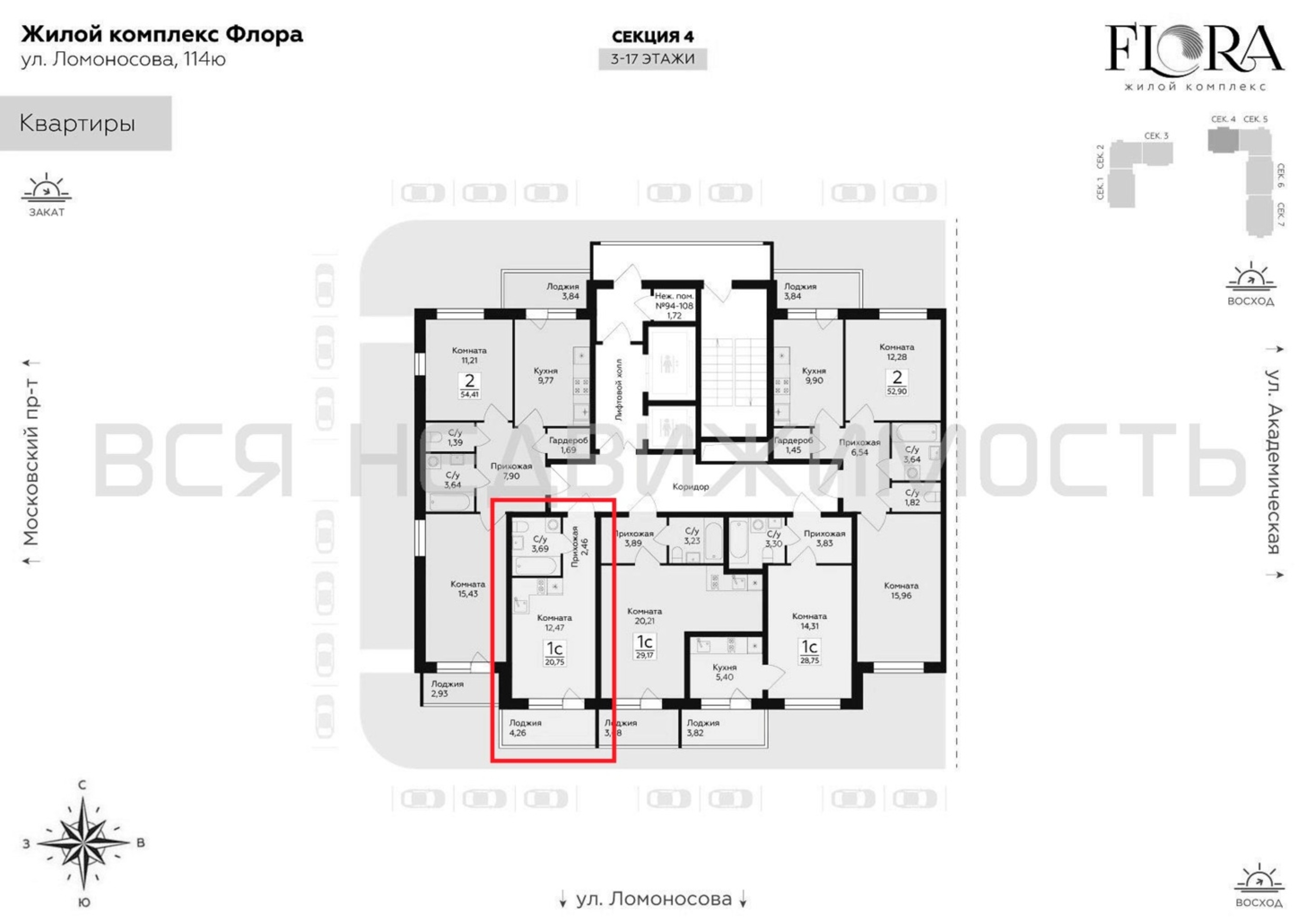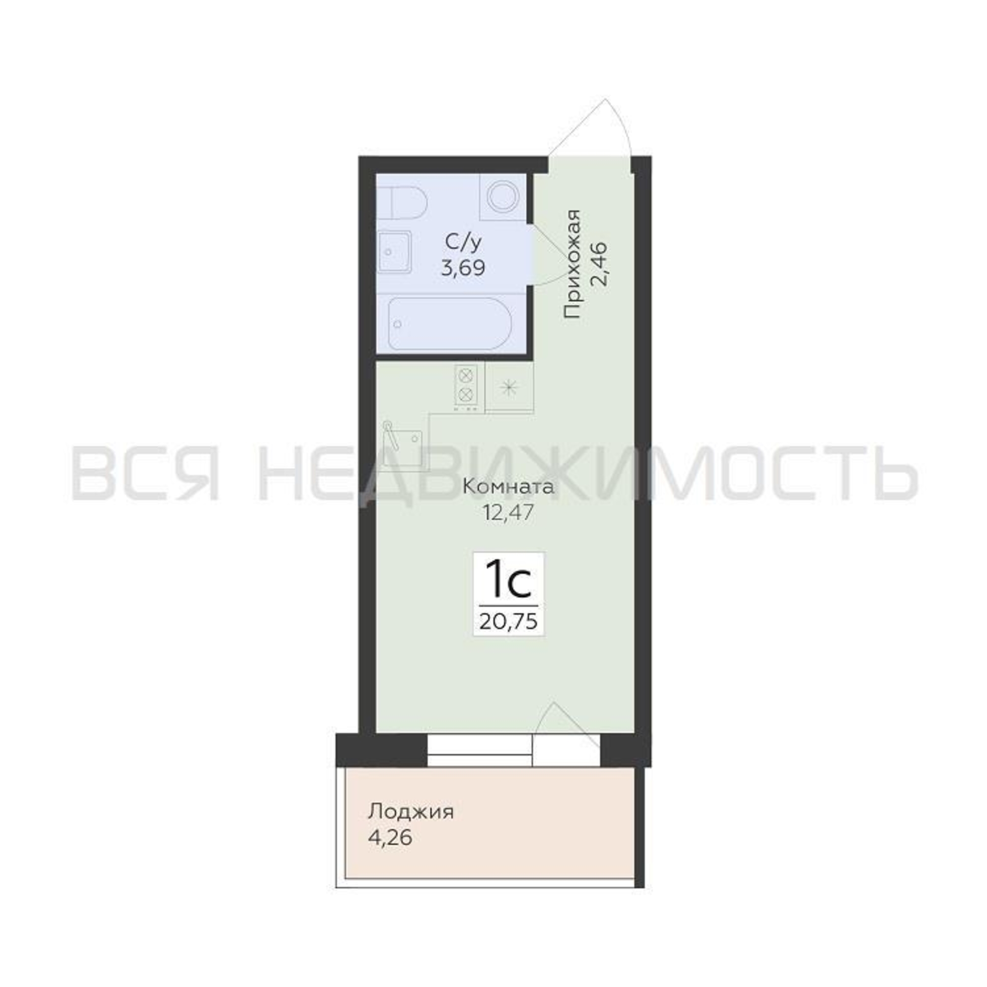 Квартиры-студии, 20.75 м² 13/17 этаж ID объекта 100130104
