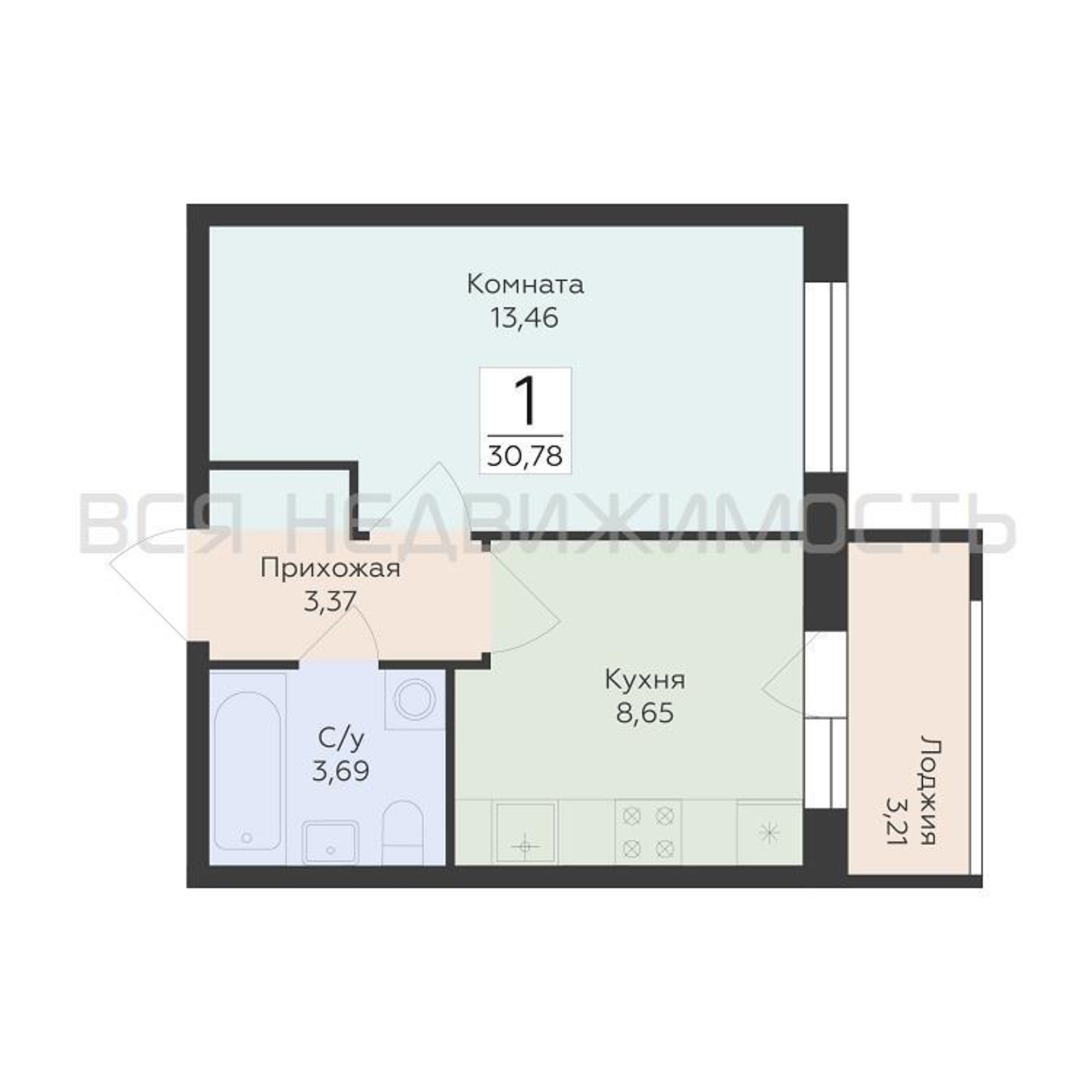 1-комнатная квартира, 30.78 м² 2/17 этаж ID объекта 100130127