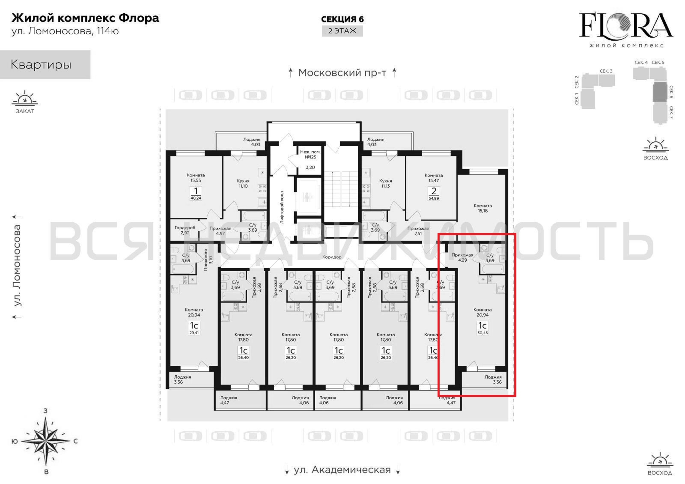 Квартиры-студии, 30.43 м² 2/16 этаж ID объекта 100130207