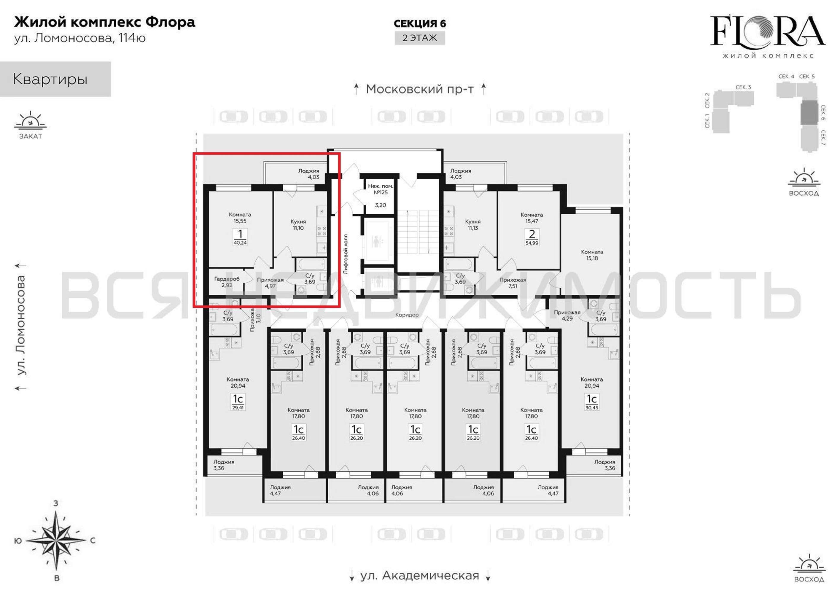 1-комнатная квартира, 40.24 м² 2/16 этаж ID объекта 100130214