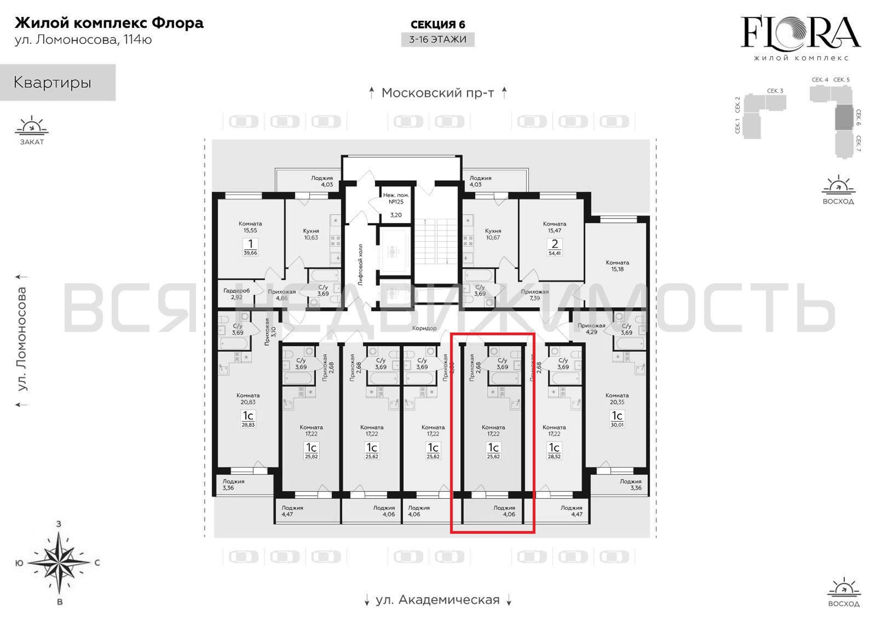 Квартиры-студии, 25.62 м² 3/16 этаж ID объекта 100130218