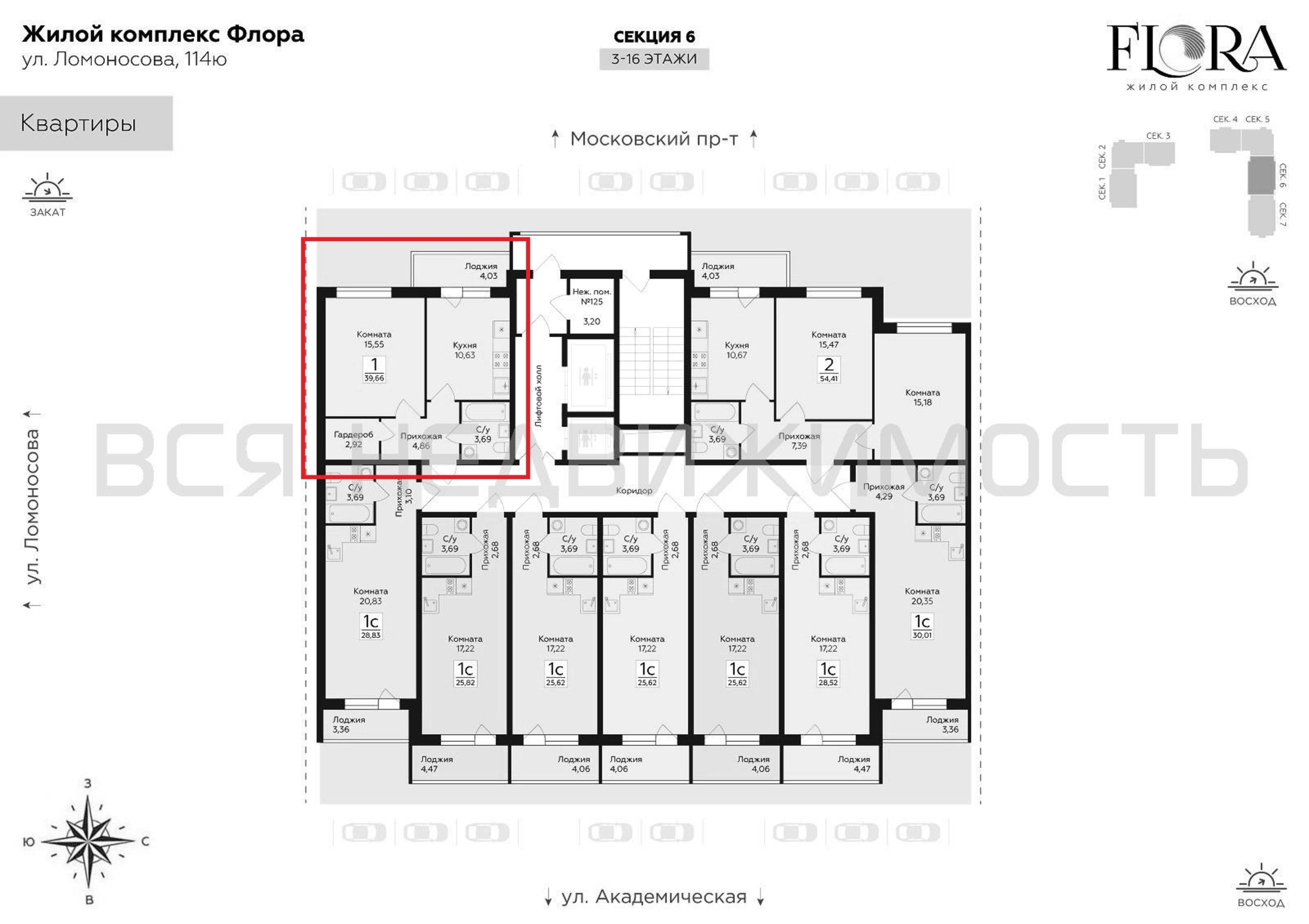 1-комнатная квартира, 39.66 м² 12/16 этаж ID объекта 100130304