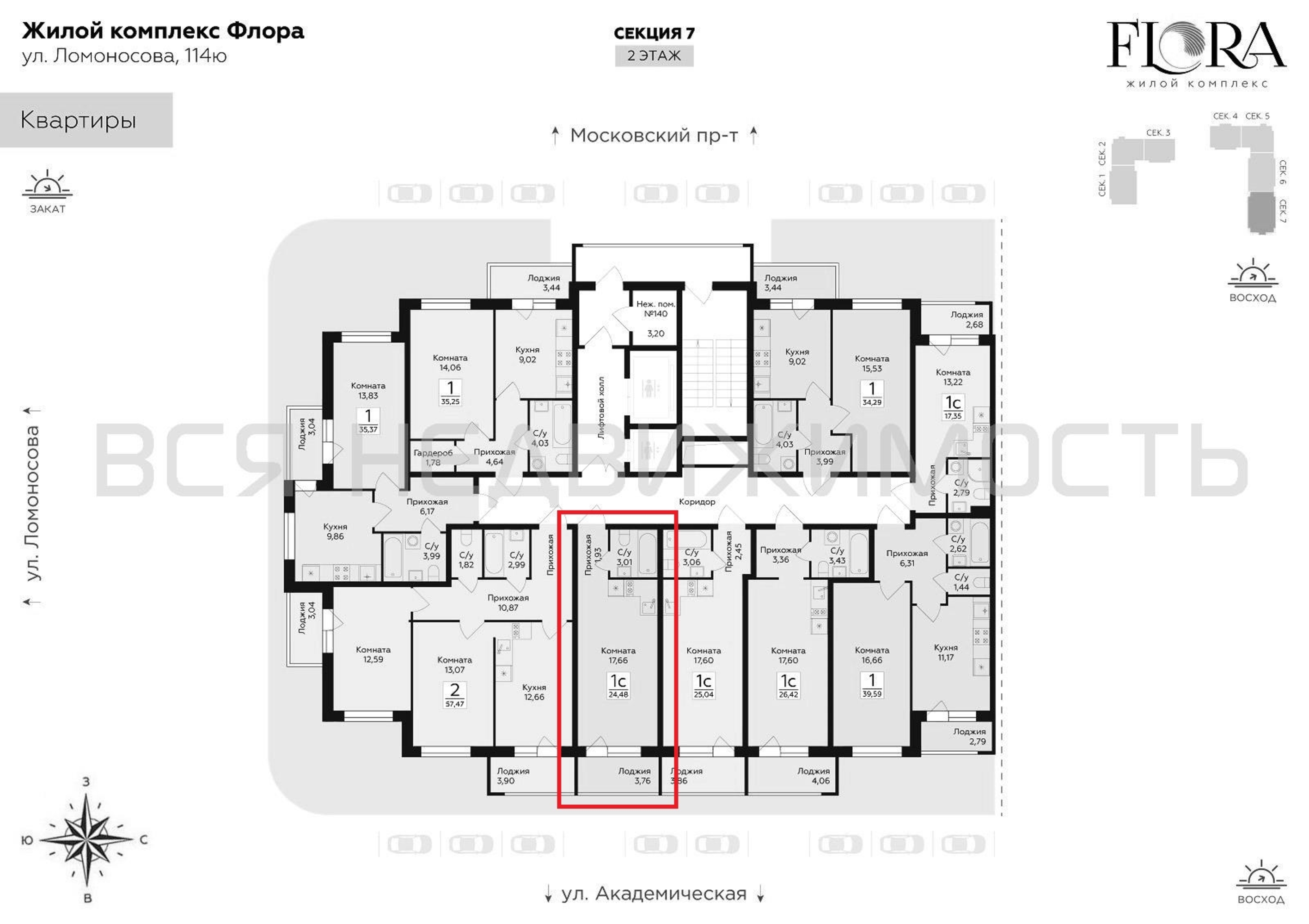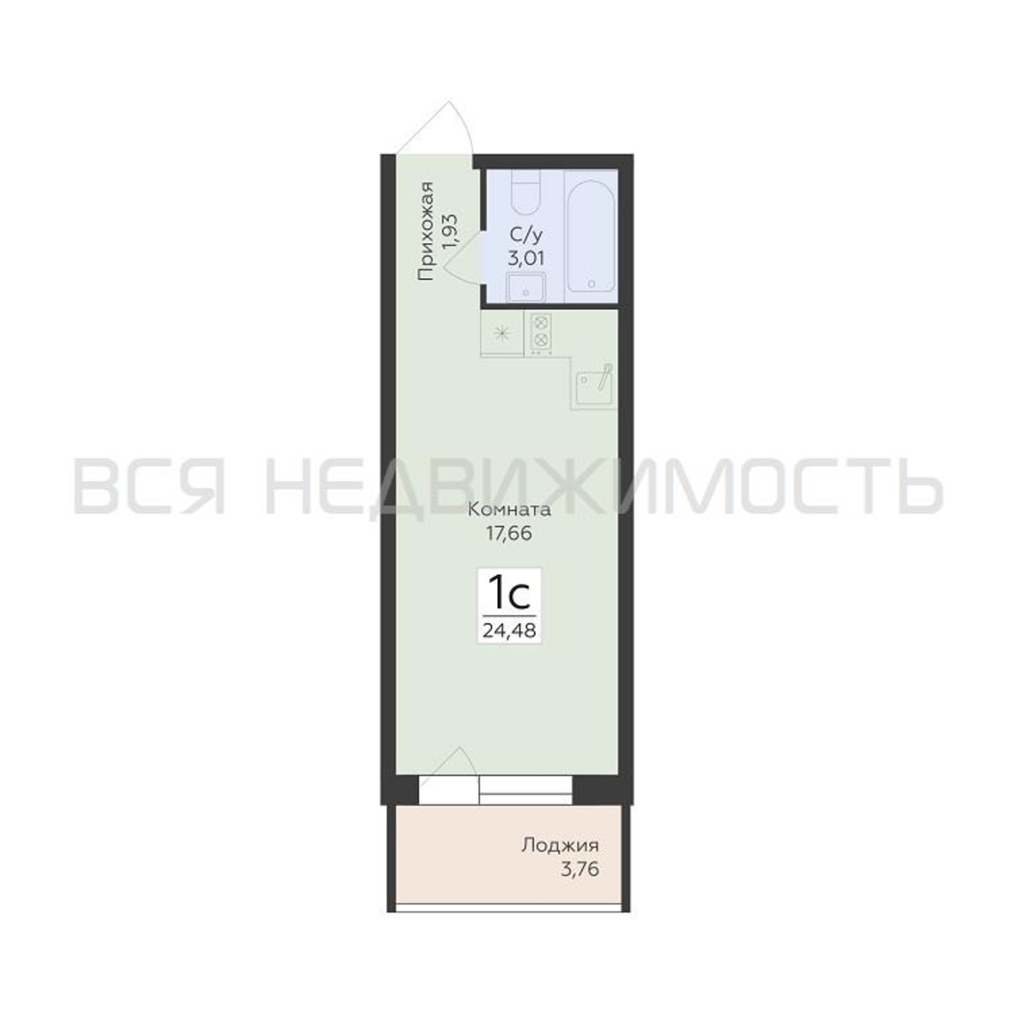 Квартиры-студии, 24.48 м² 2/15 этаж ID объекта 100130346
