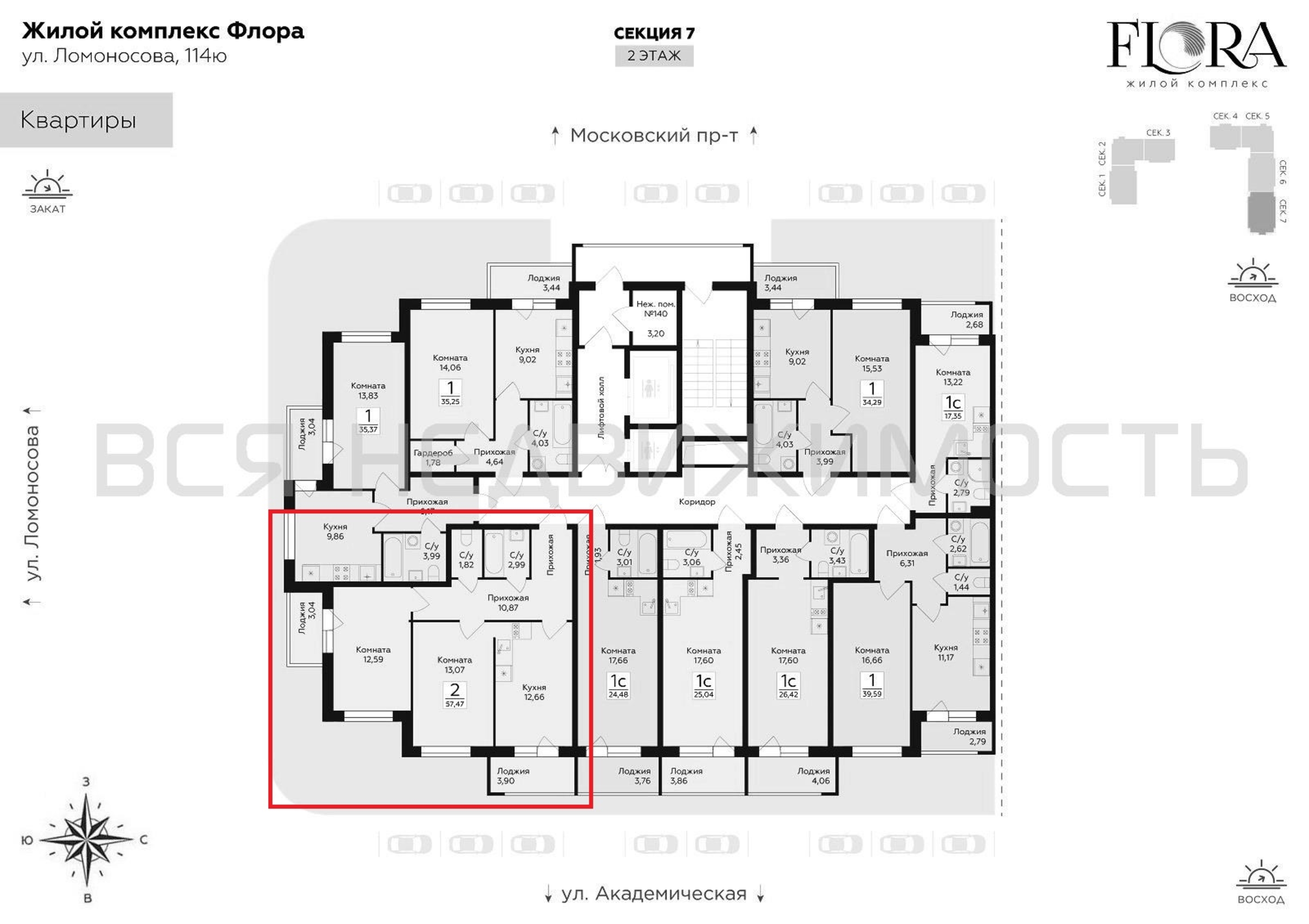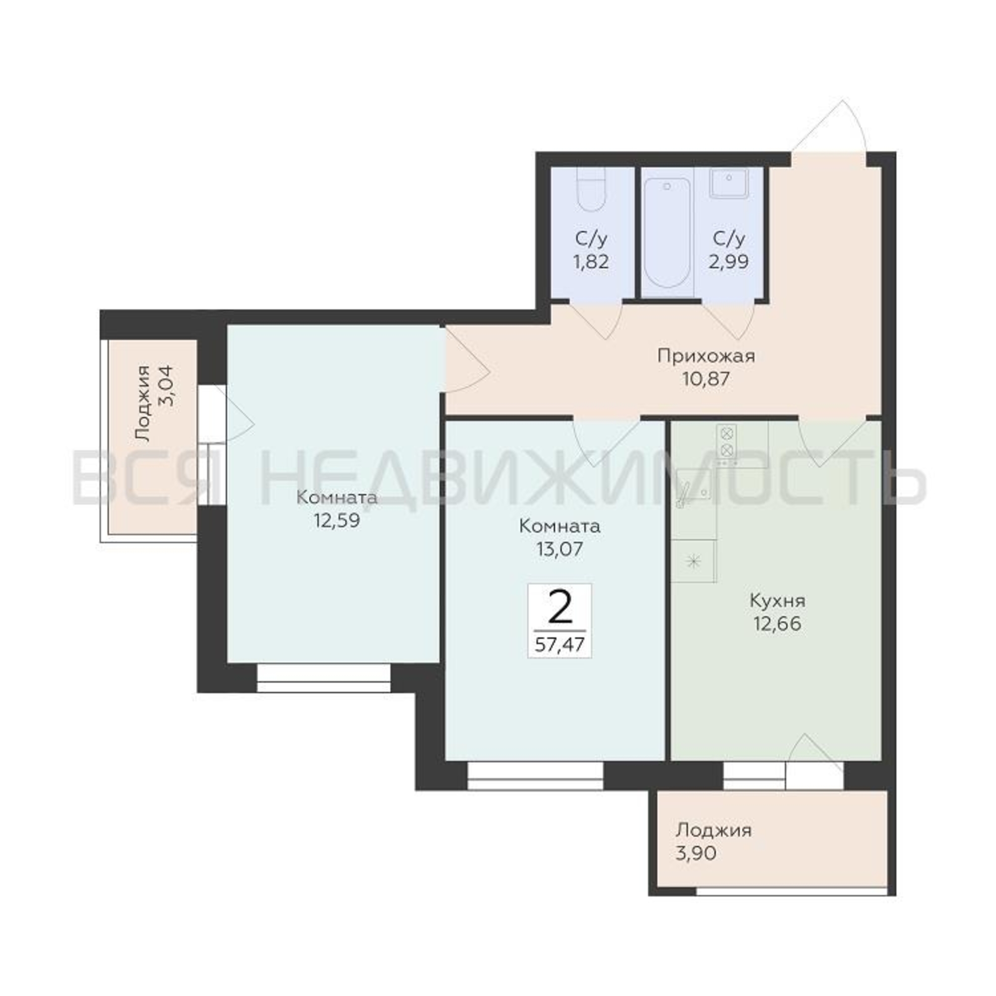 2-комнатная квартира, 57.47 м² 2/15 этаж ID объекта 100130347
