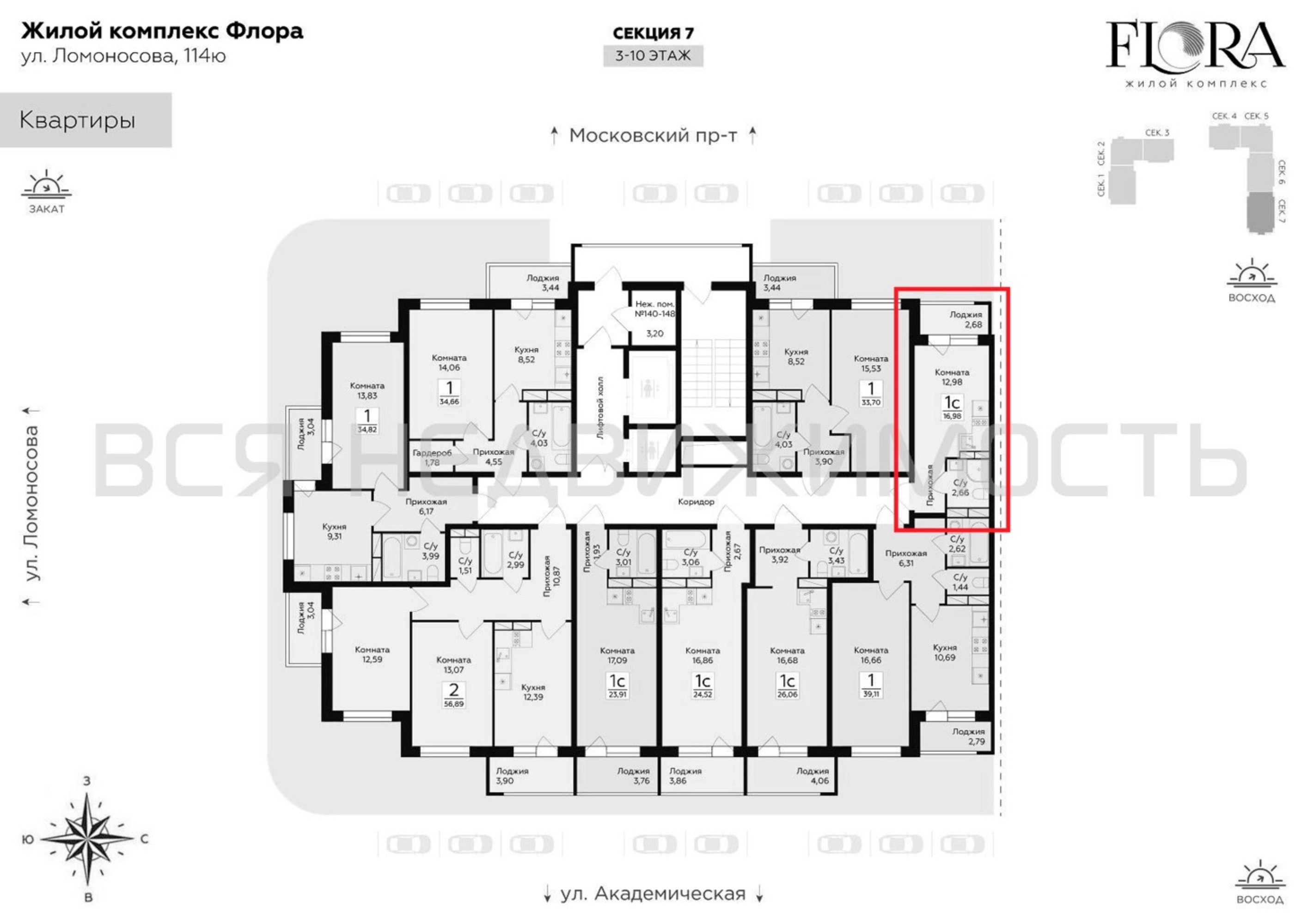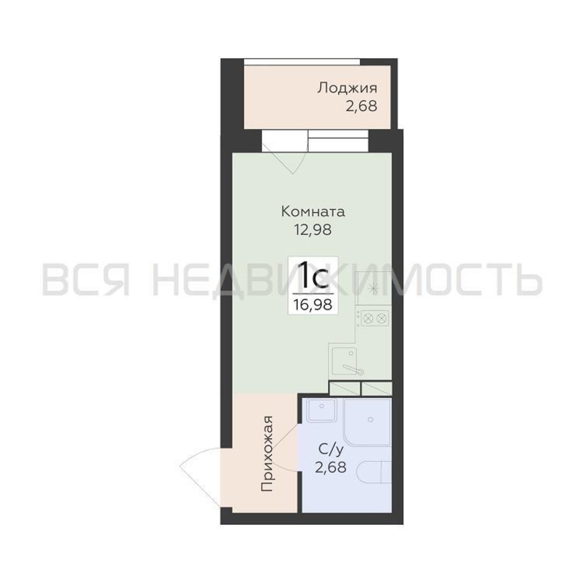 Квартиры-студии, 16.98 м² 4/15 этаж ID объекта 100130360