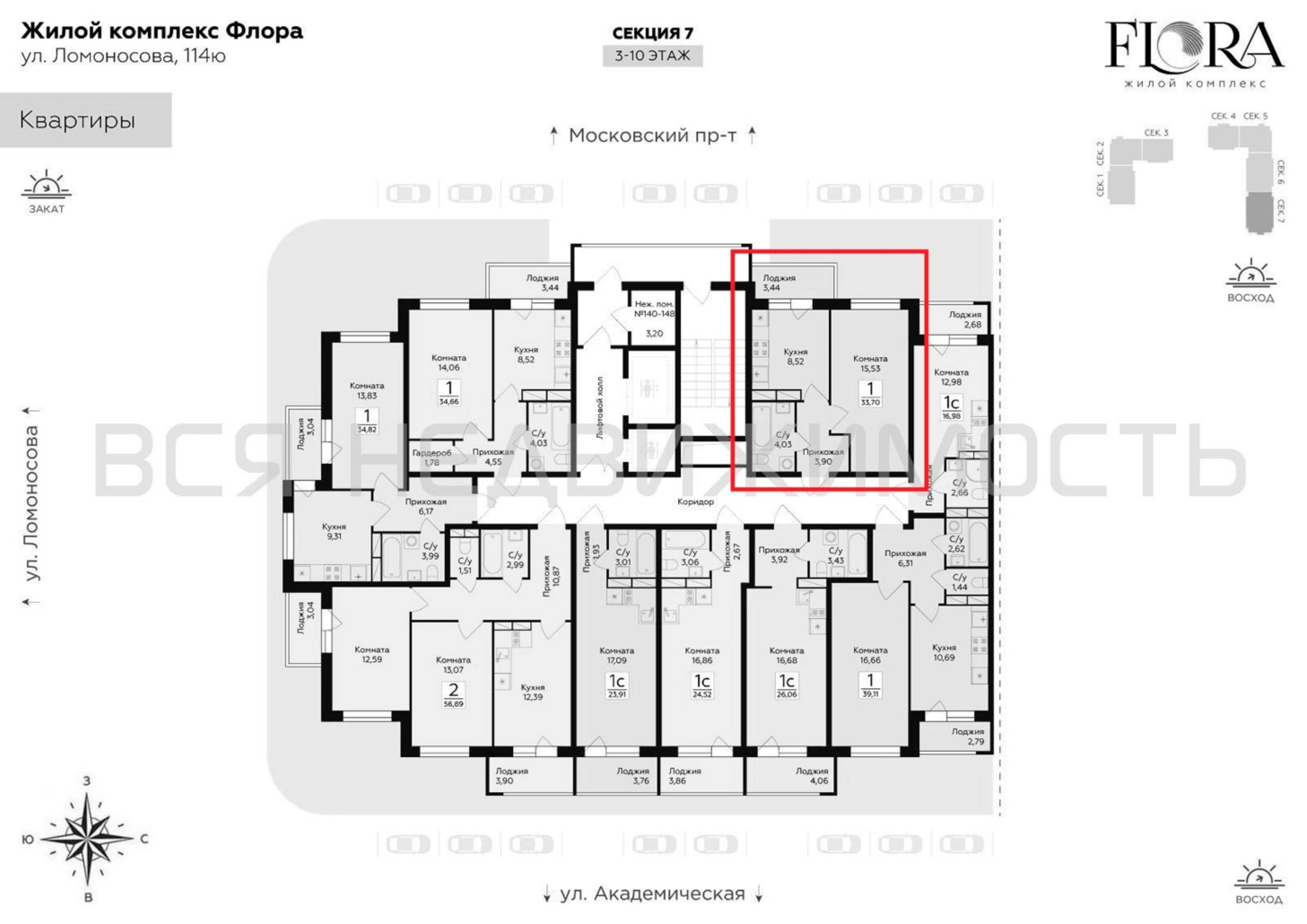 1-комнатная квартира, 33.70 м² 6/15 этаж ID объекта 100130377