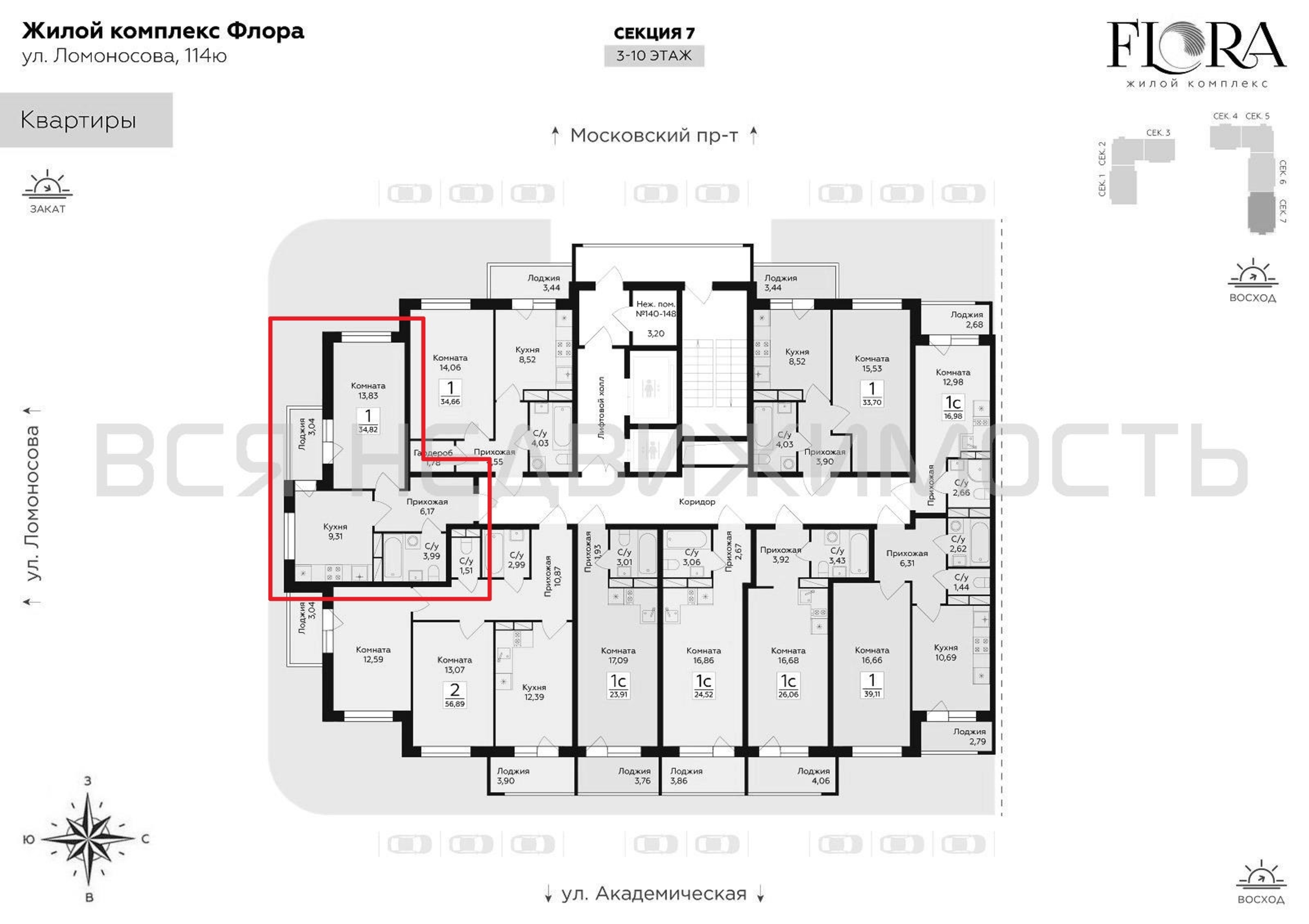 1-комнатная квартира, 34.82 м² 6/15 этаж ID объекта 100130384