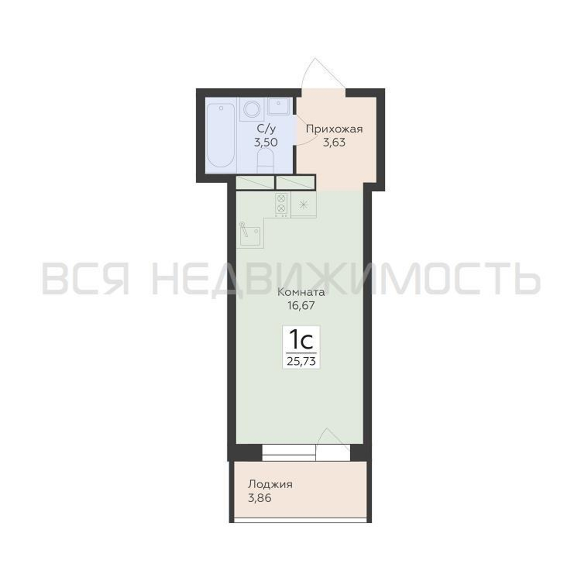 Квартиры-студии, 25.73 м² 12/15 этаж ID объекта 100130432