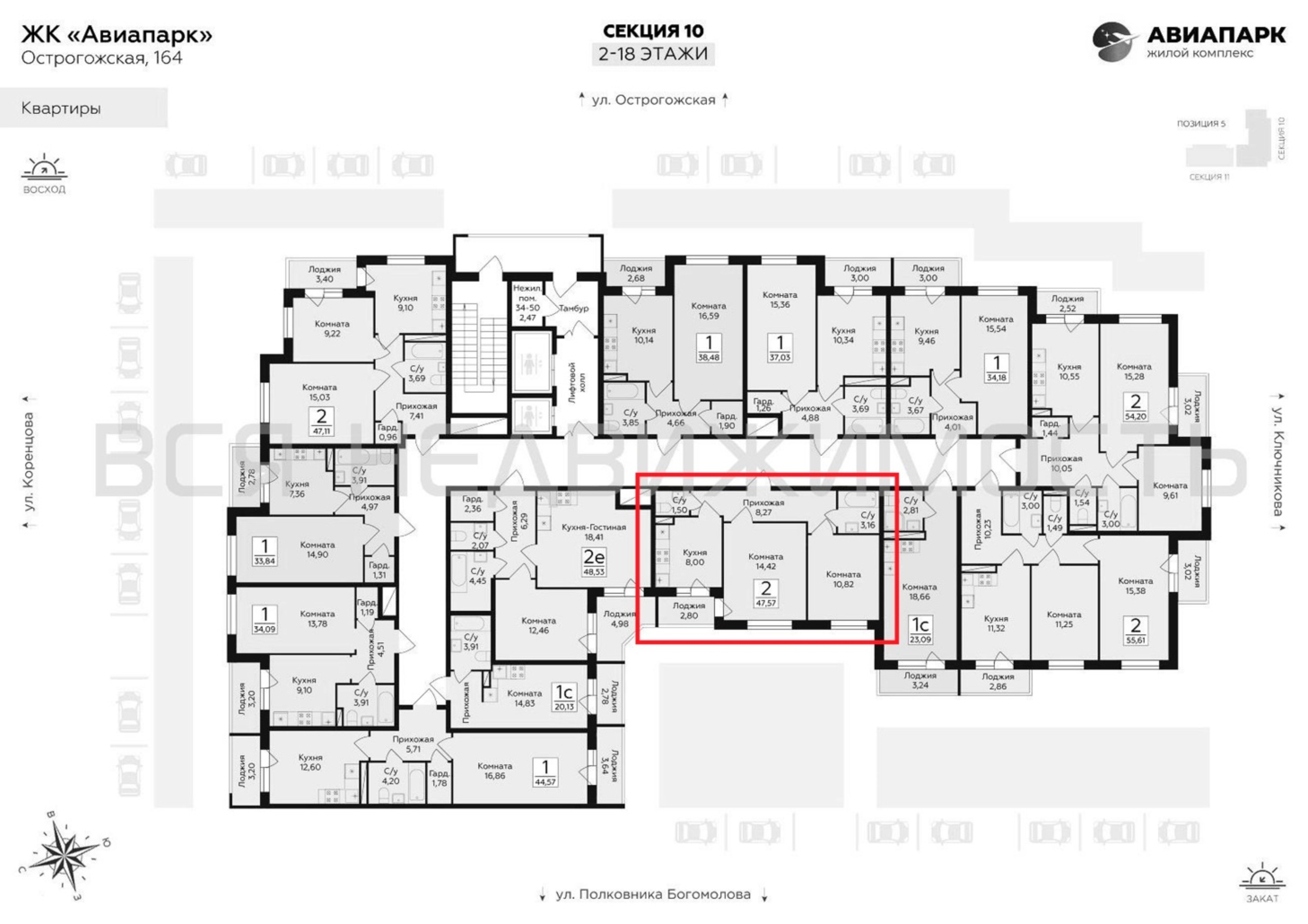 2-комнатная квартира, 47.57 м² 9/18 этаж ID объекта 100130554