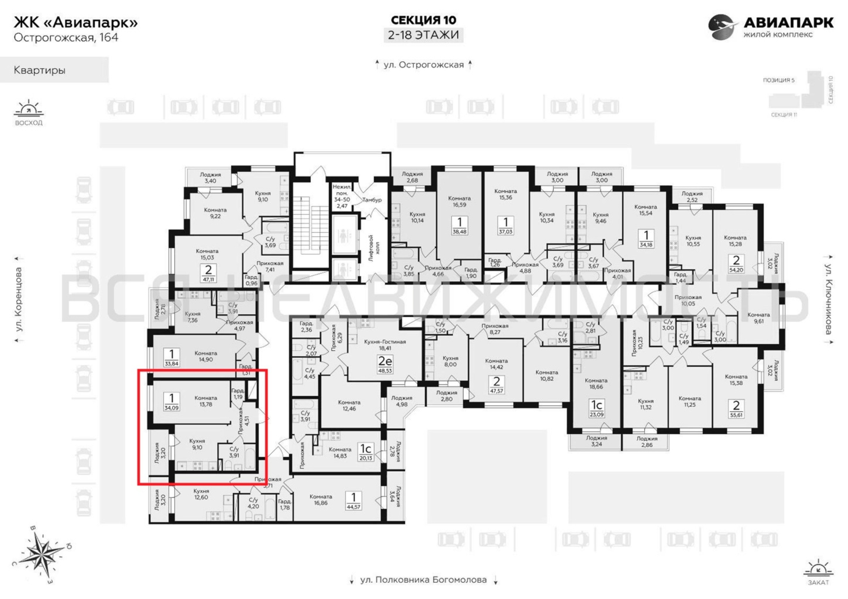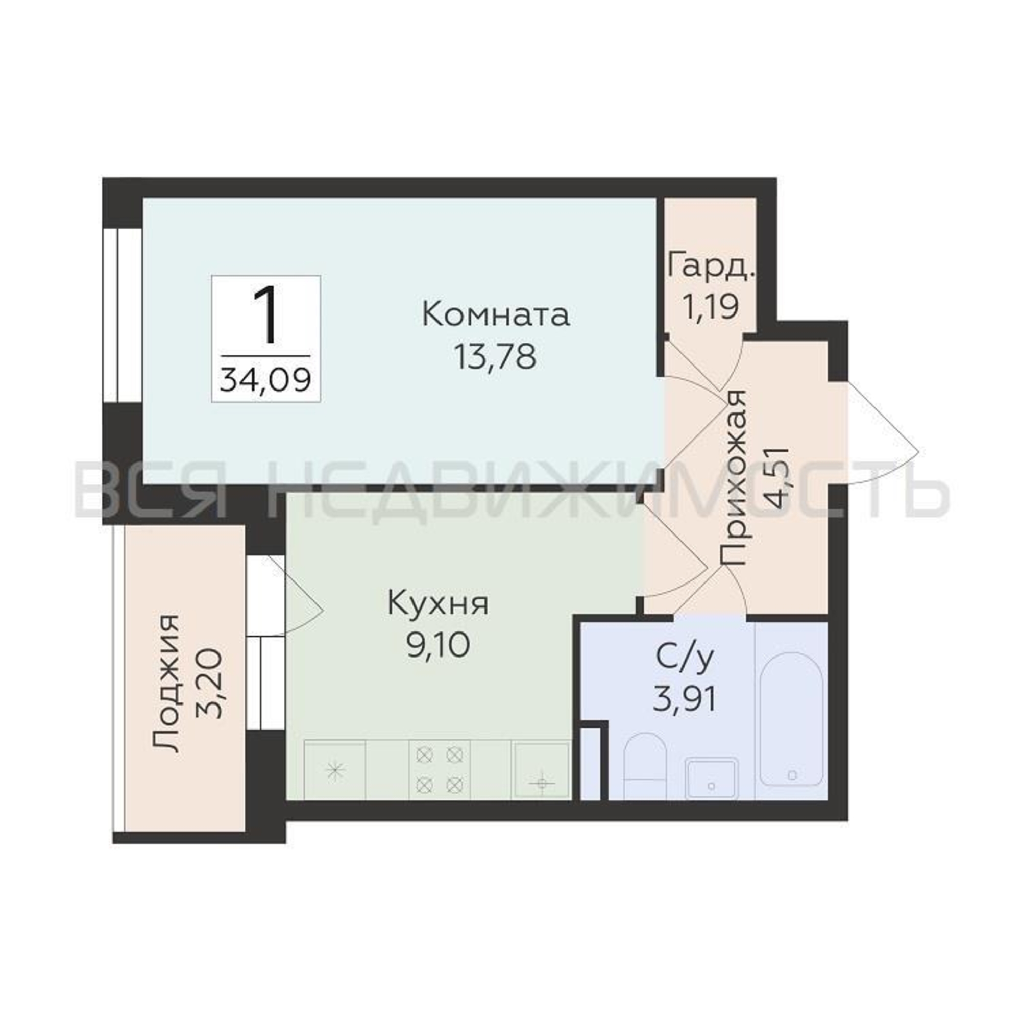 1-комнатная квартира, 34.09 м² 15/18 этаж ID объекта 100130636