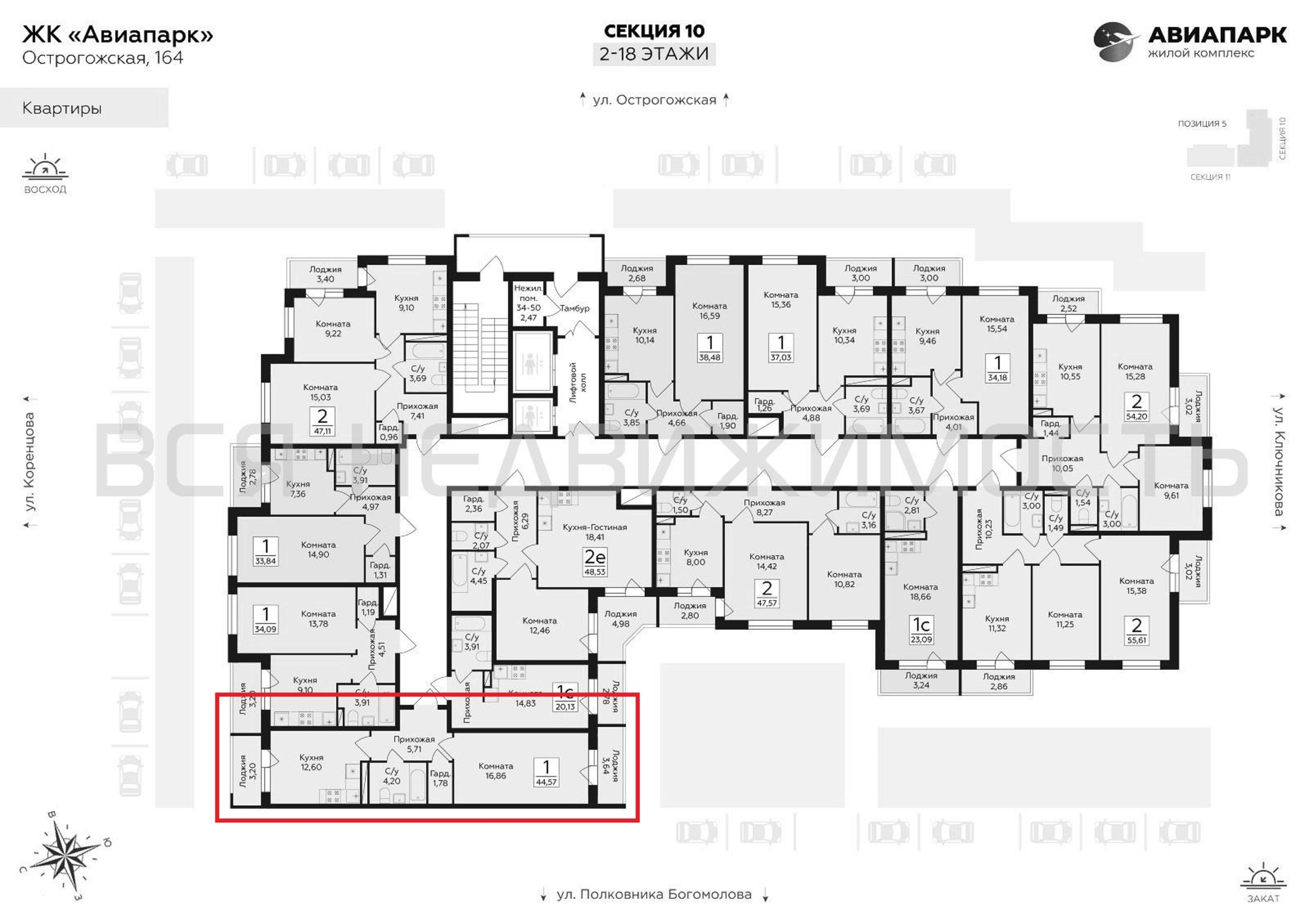 1-комнатная квартира, 44.57 м² 16/18 этаж ID объекта 100130648