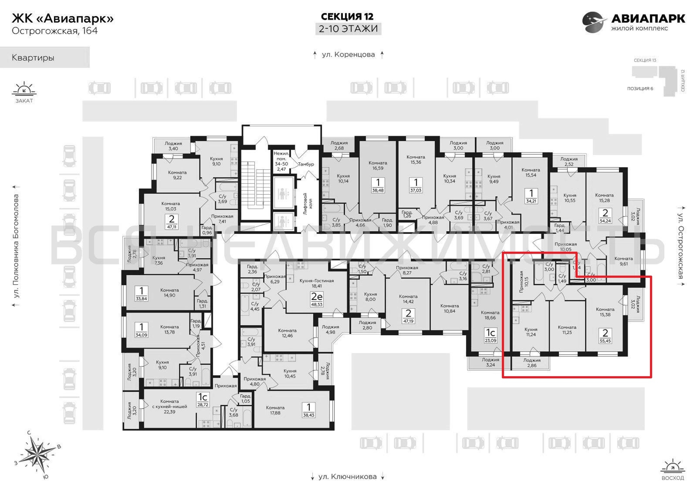 2-комнатная квартира, 55.45 м² 9/18 этаж ID объекта 100130863