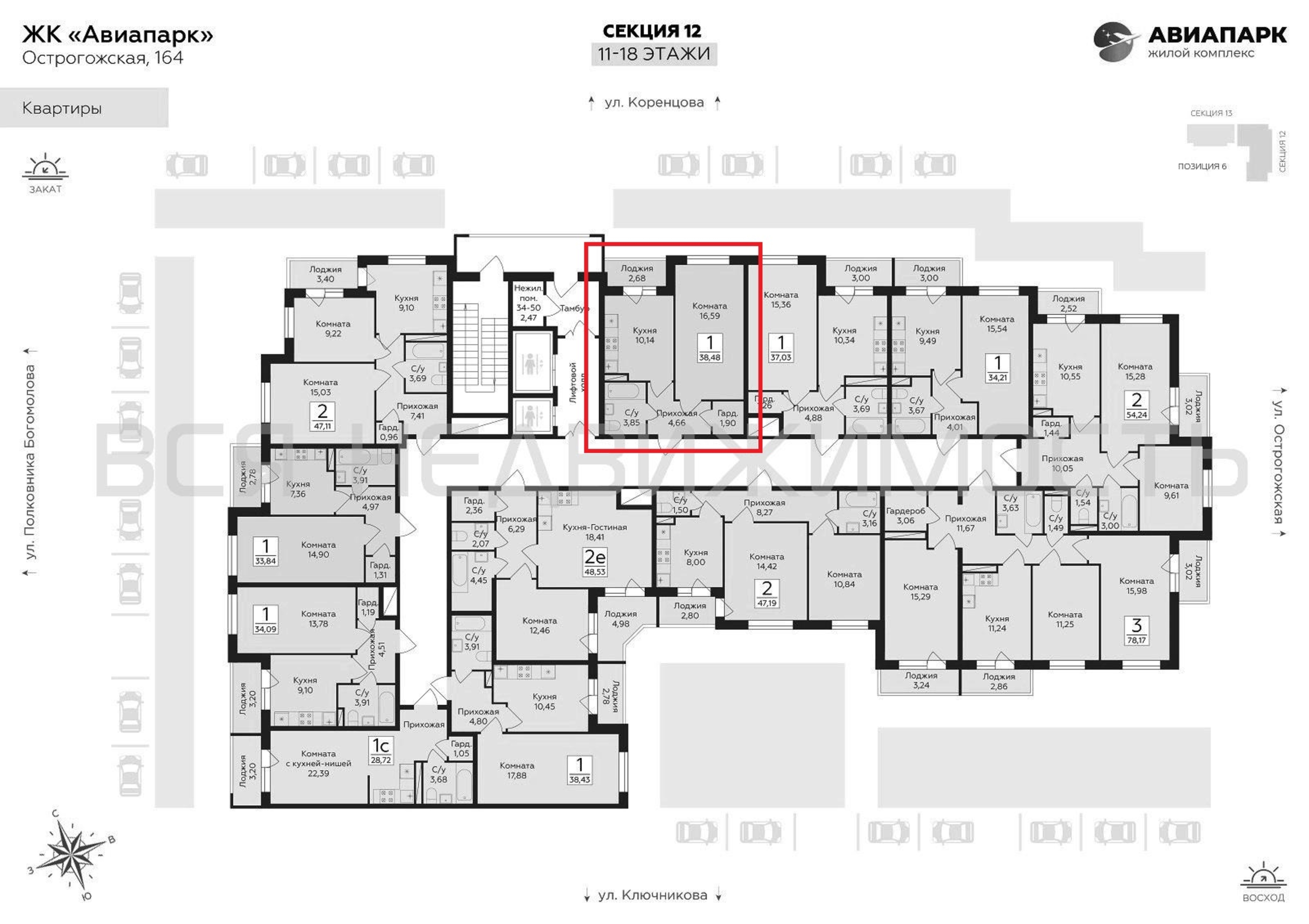 1-комнатная квартира, 38.48 м² 11/18 этаж ID объекта 100130885