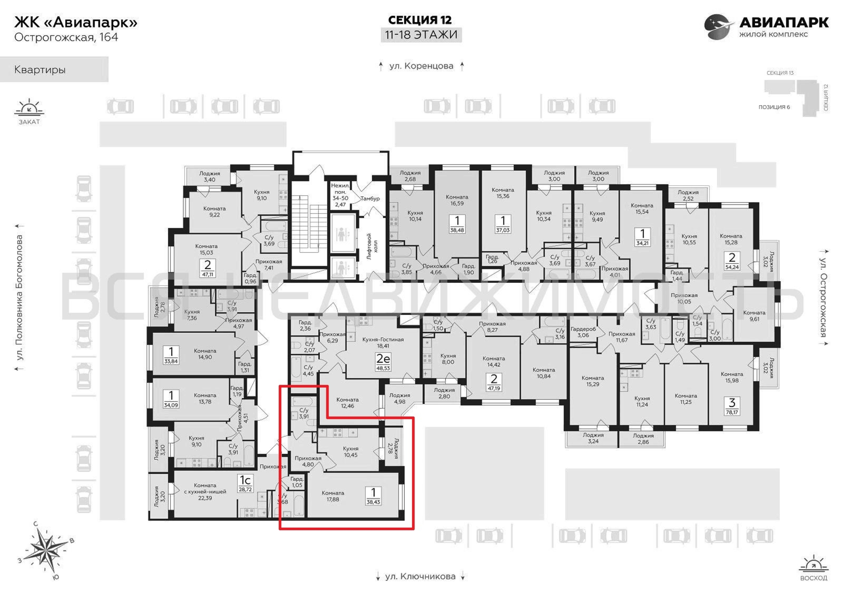 1-комнатная квартира, 38.43 м² 16/18 этаж ID объекта 100130952