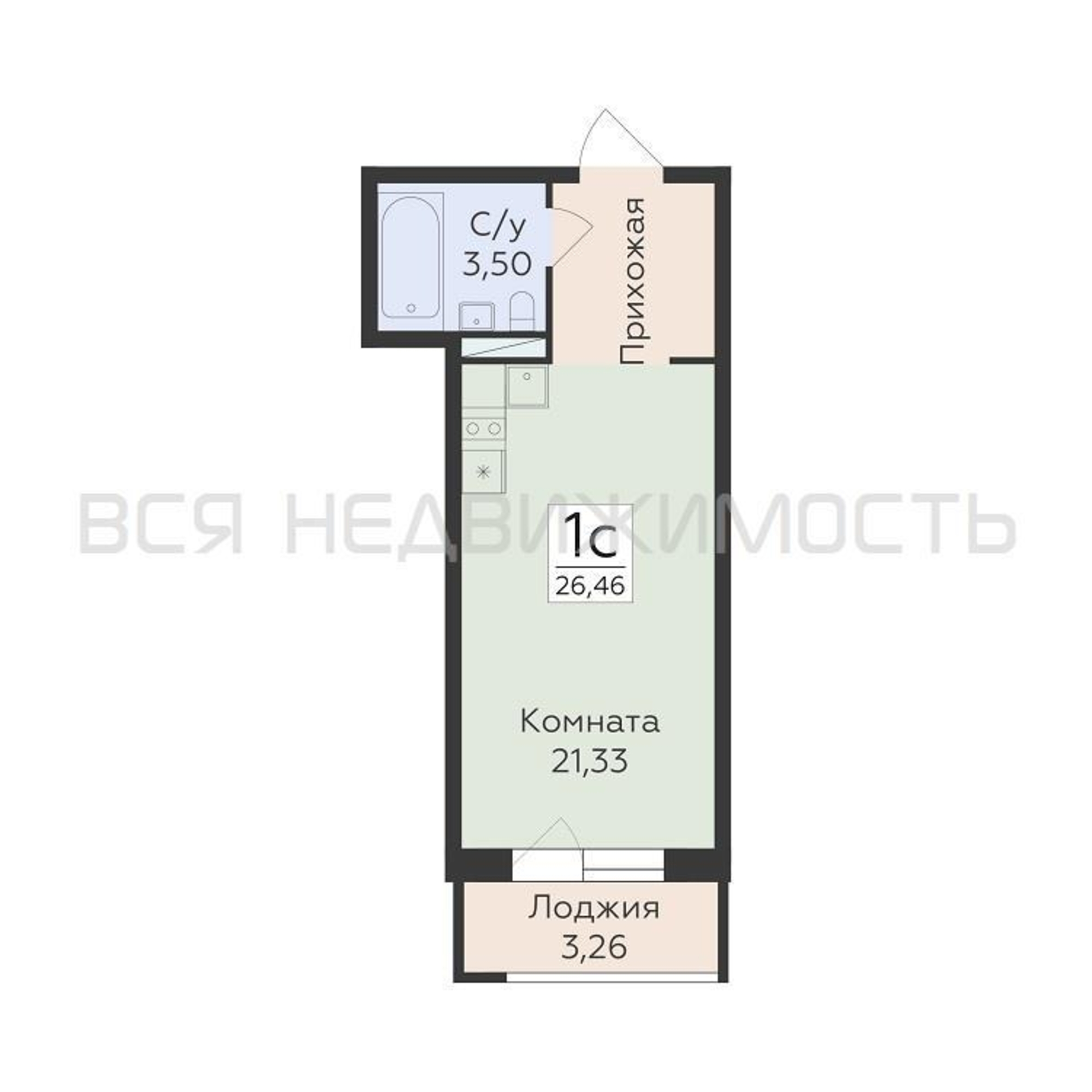 Квартиры-студии, 26.46 м² 2/16 этаж ID объекта 100130987