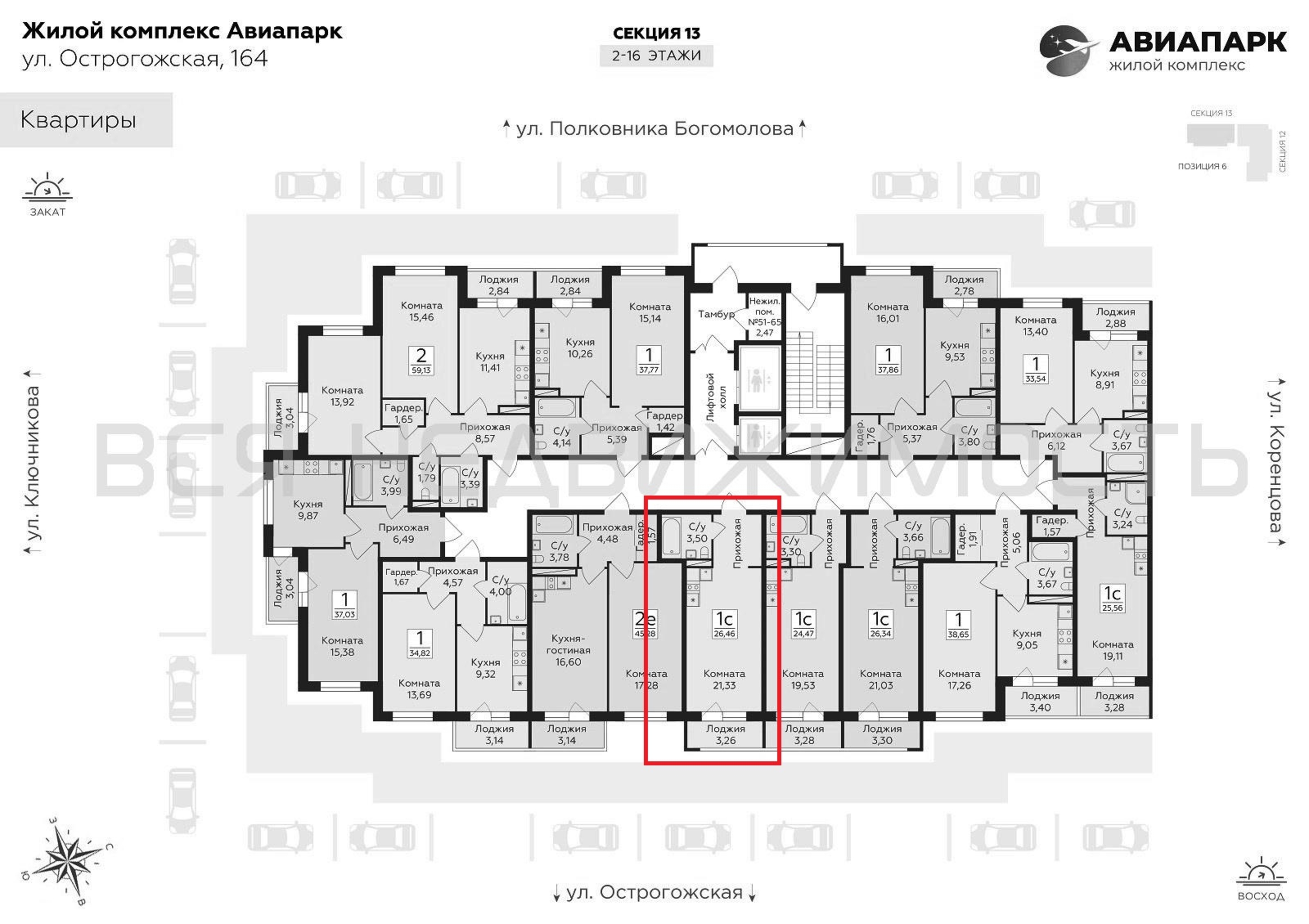 Квартиры-студии, 26.46 м² 16/16 этаж ID объекта 100131155