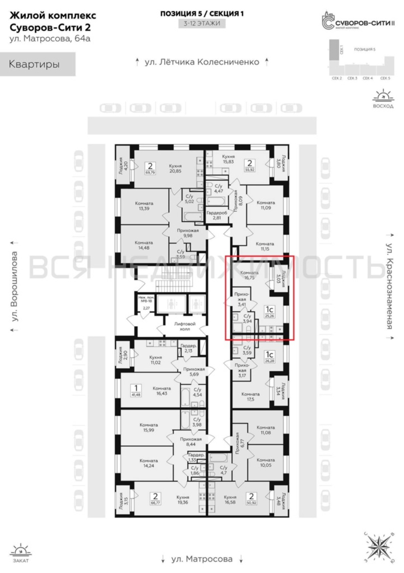 Квартиры-студии, 25.26 м² 5/12 этаж ID объекта 100131522