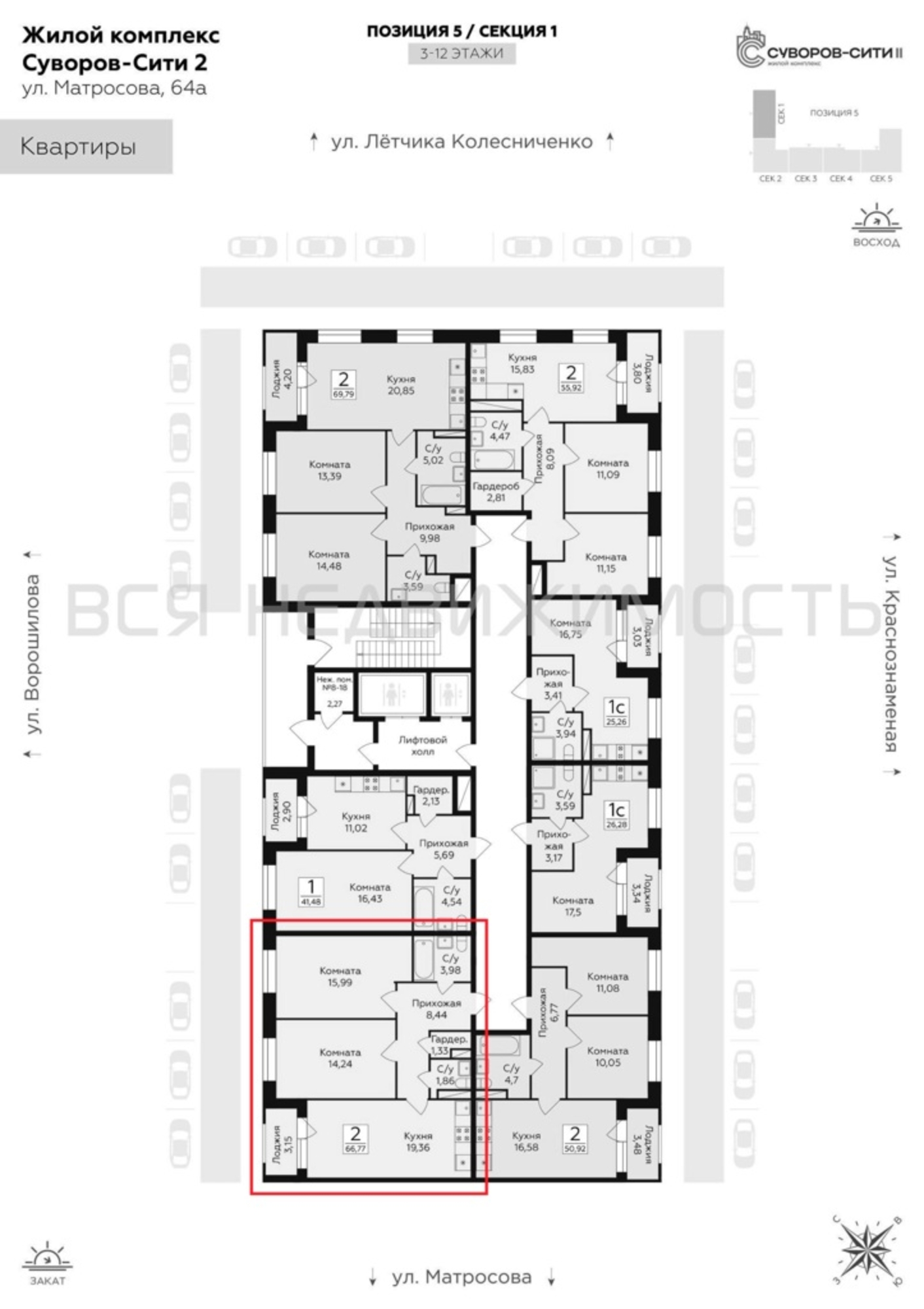 2-комнатная квартира, 66.77 м² 6/12 этаж ID объекта 100131532