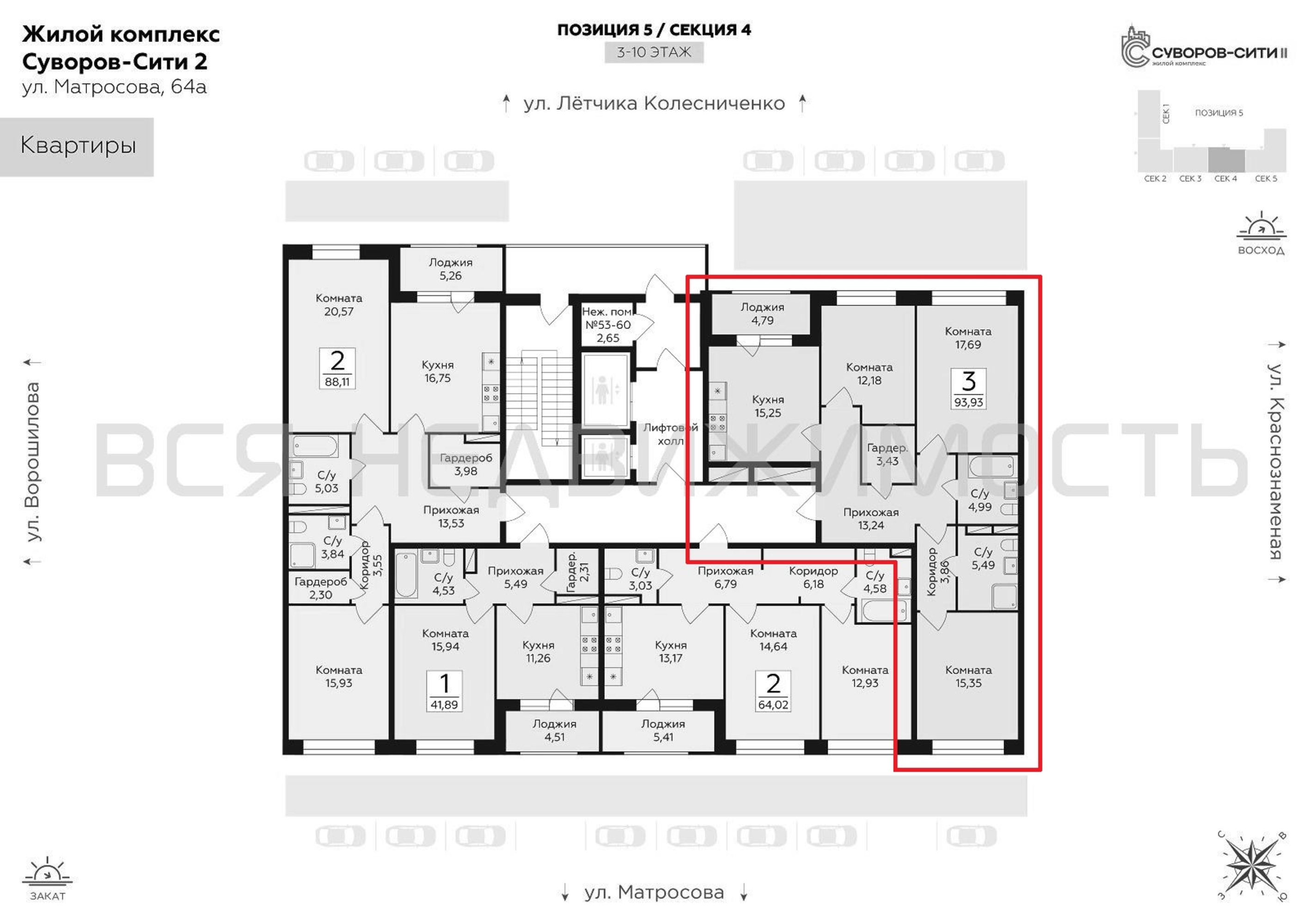 3-комнатная квартира, 93.93 м² 8/10 этаж ID объекта 100131751