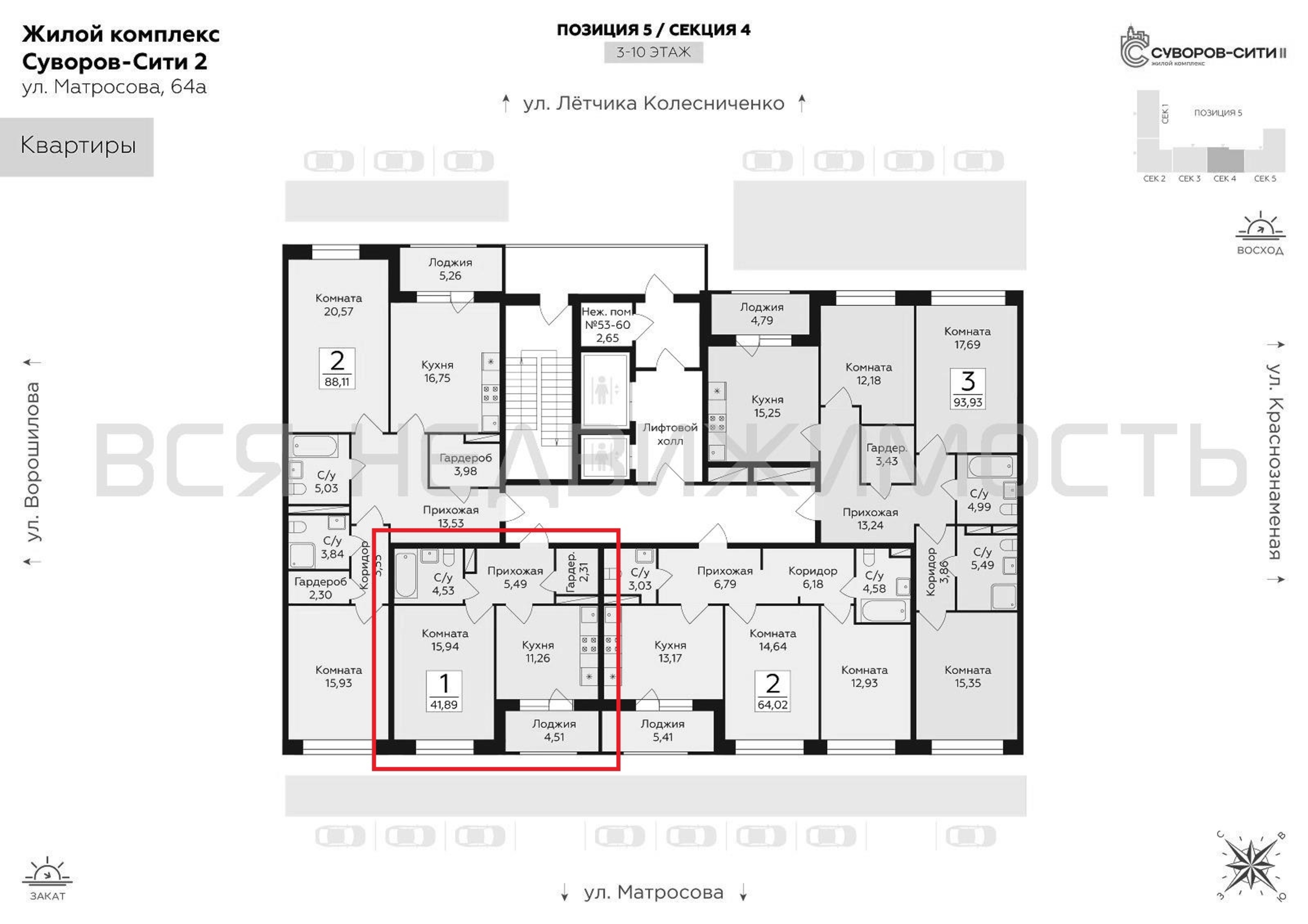 1-комнатная квартира, 41.89 м² 8/10 этаж ID объекта 100131753