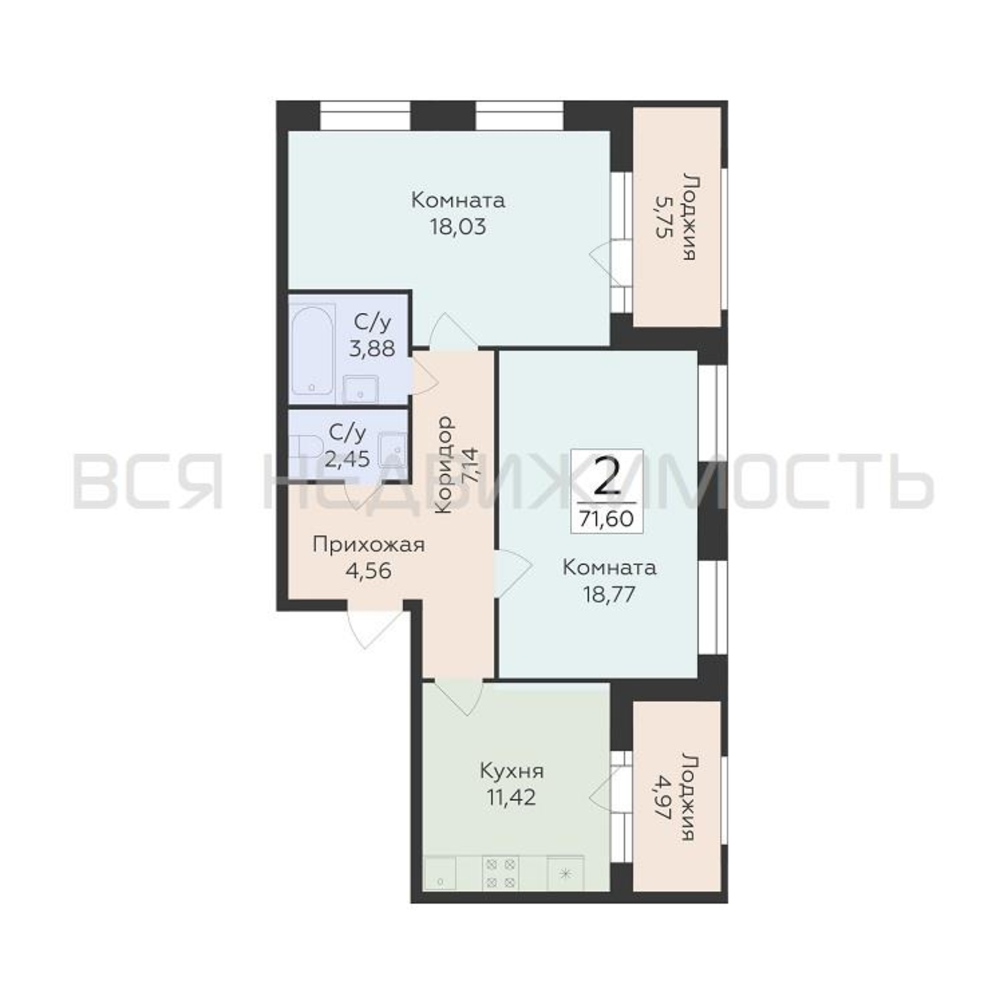2-комнатная квартира, 71.60 м² 2/10 этаж ID объекта 100131764