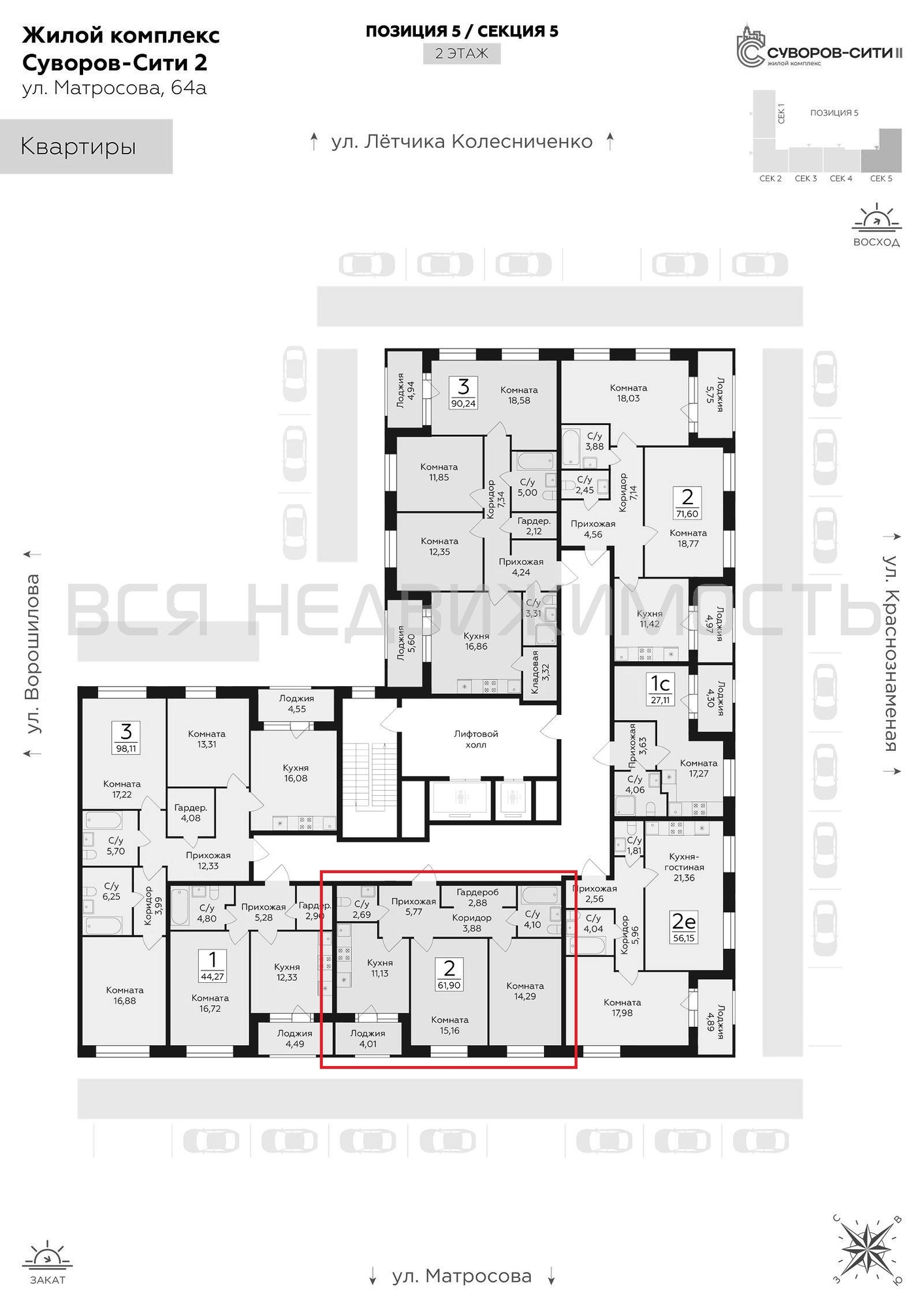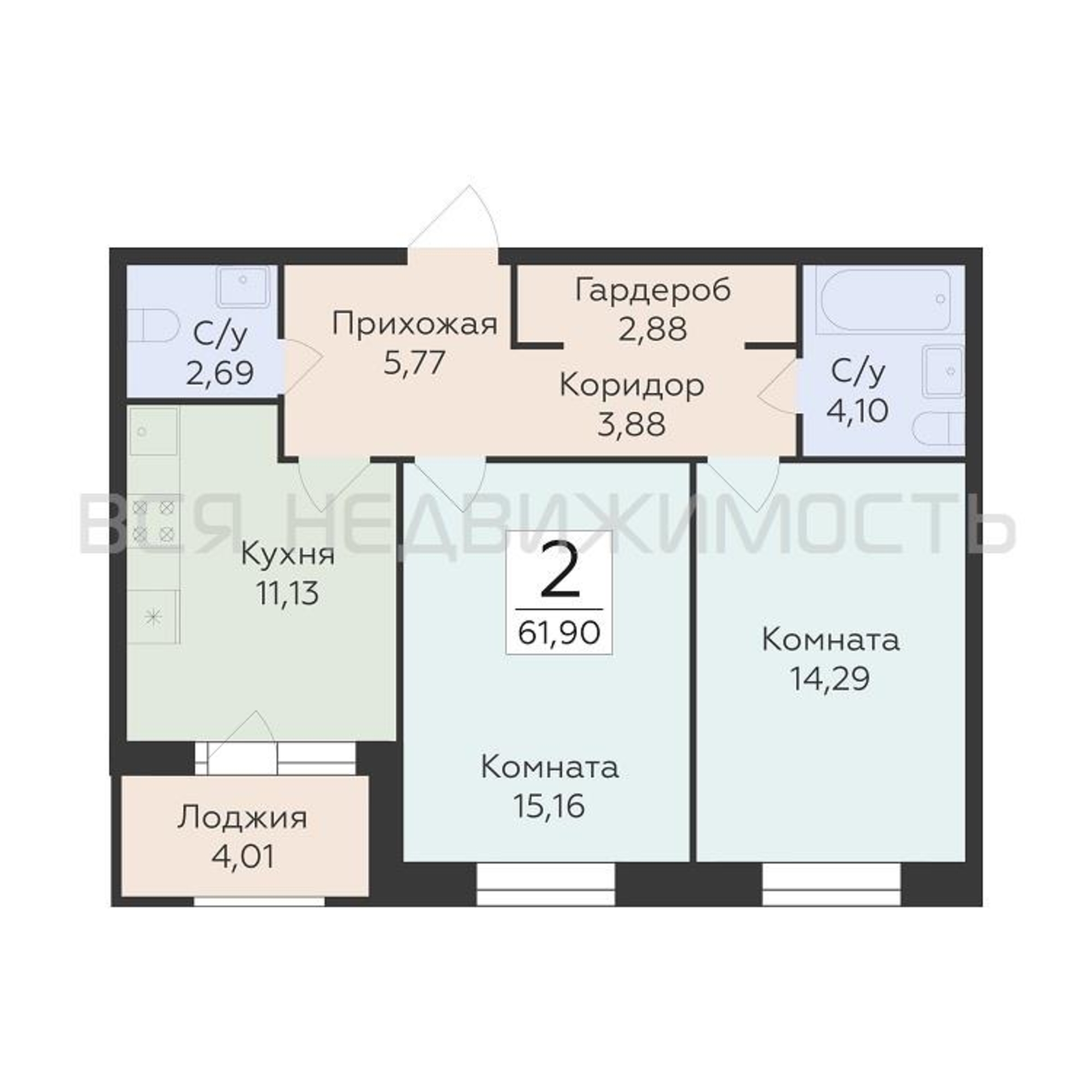 2-комнатная квартира, 61.90 м² 2/10 этаж ID объекта 100131767