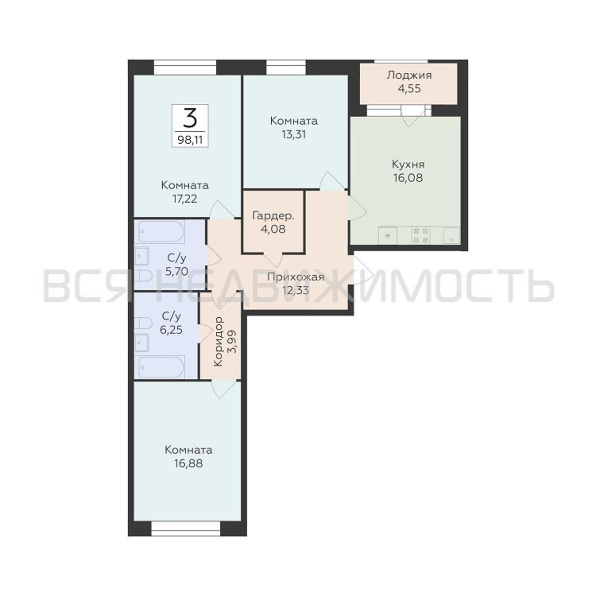 3-комнатная квартира, 98.11 м² 2/10 этаж ID объекта 100131769