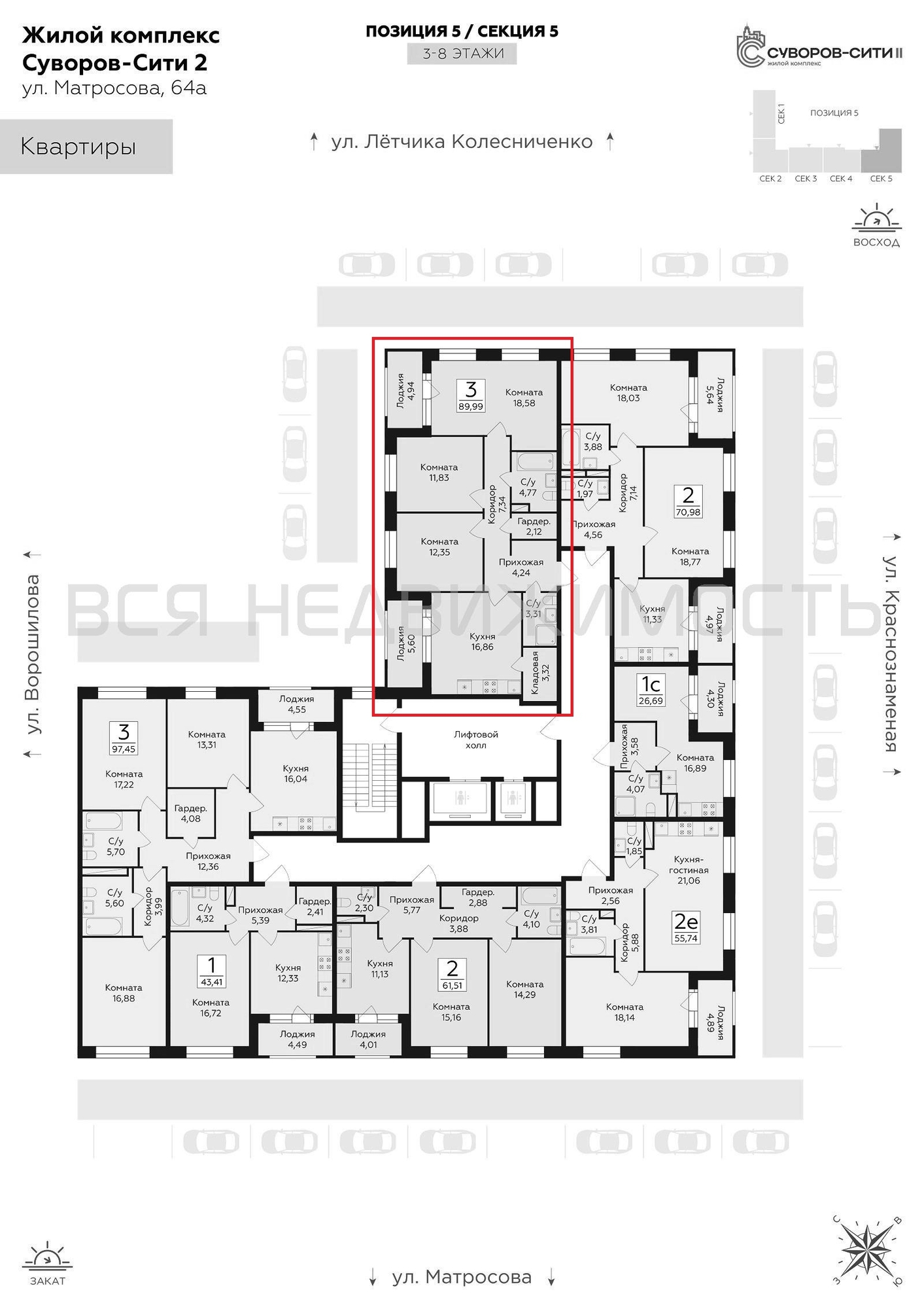 3-комнатная квартира, 89.99 м² 6/10 этаж ID объекта 100131791