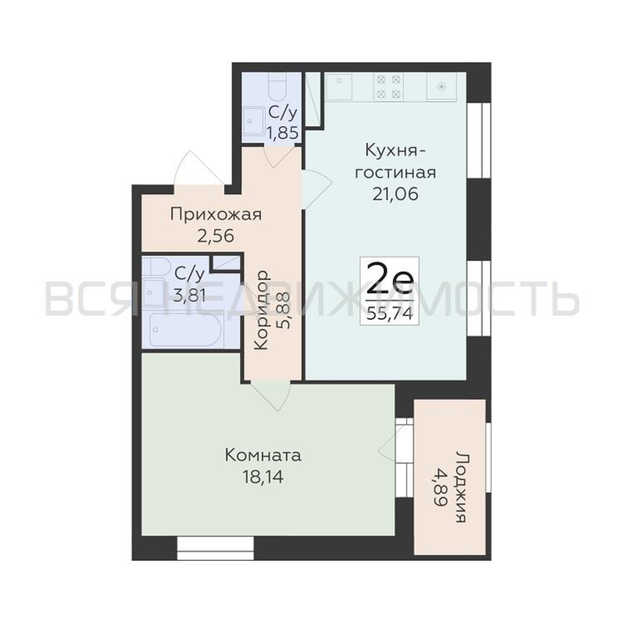 1-комнатная квартира, 55.74 м² 8/10 этаж ID объекта 100131808