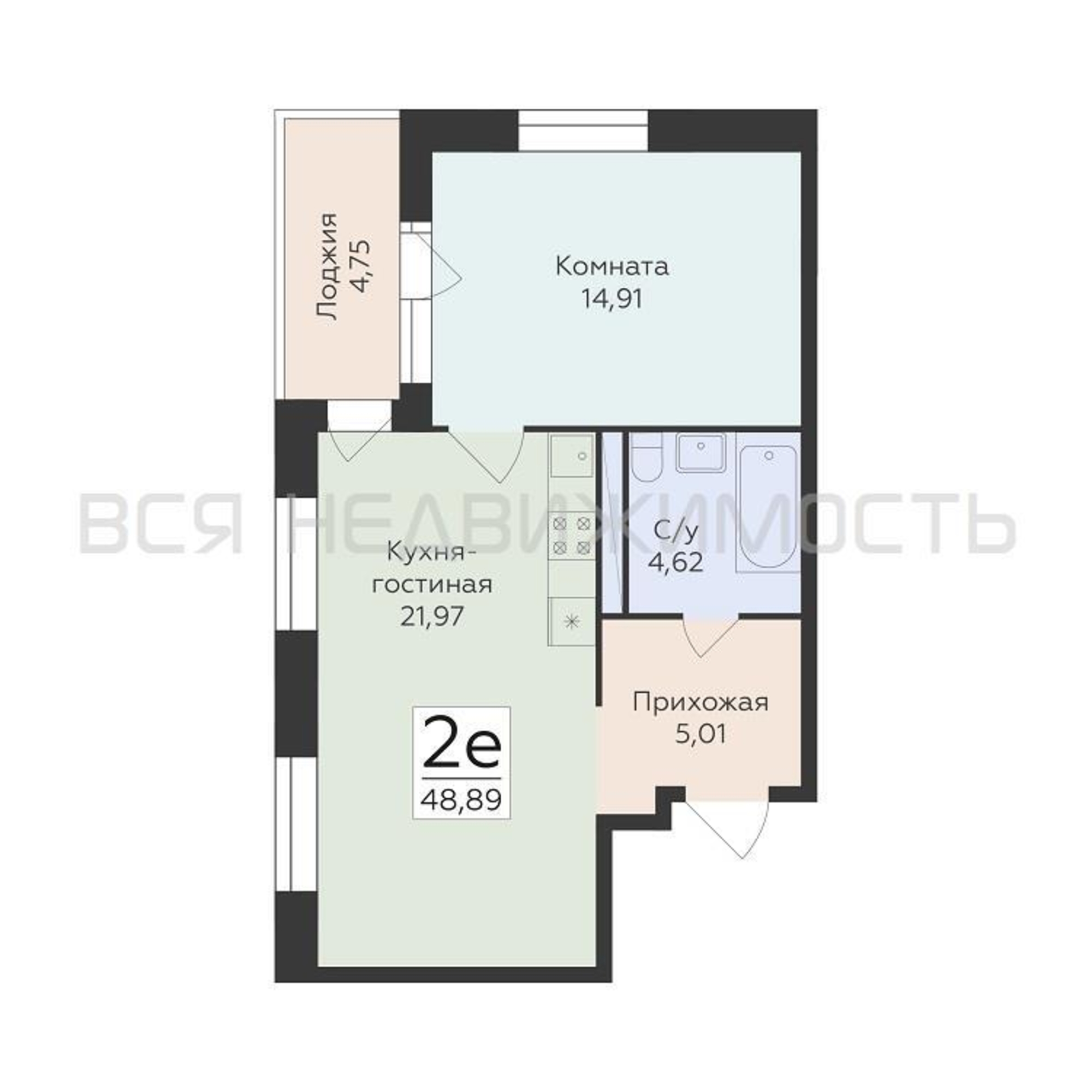 1-комнатная квартира, 48.89 м² 6/10 этаж ID объекта 100131845