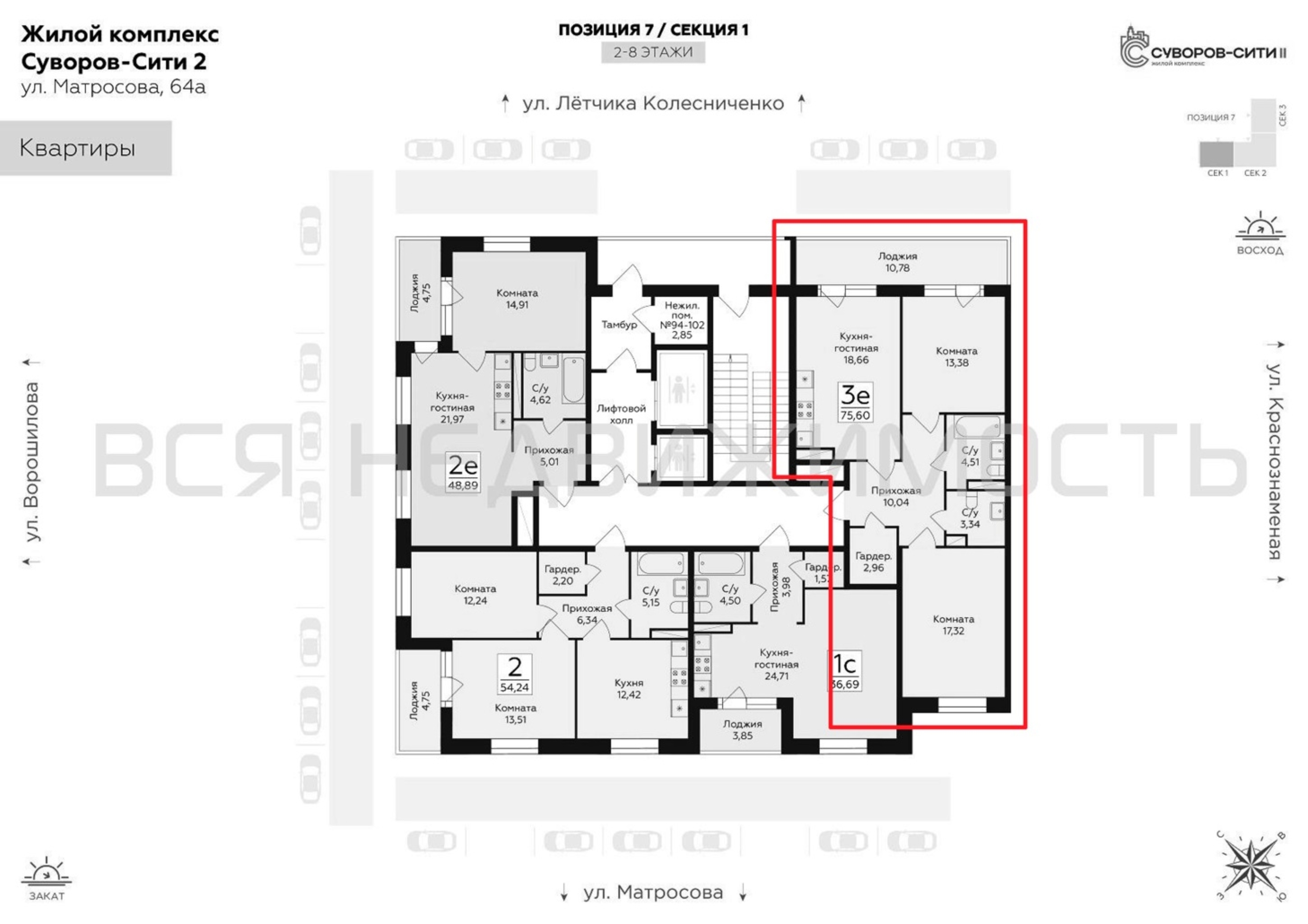 2-комнатная квартира, 75.60 м² 8/10 этаж ID объекта 100131850