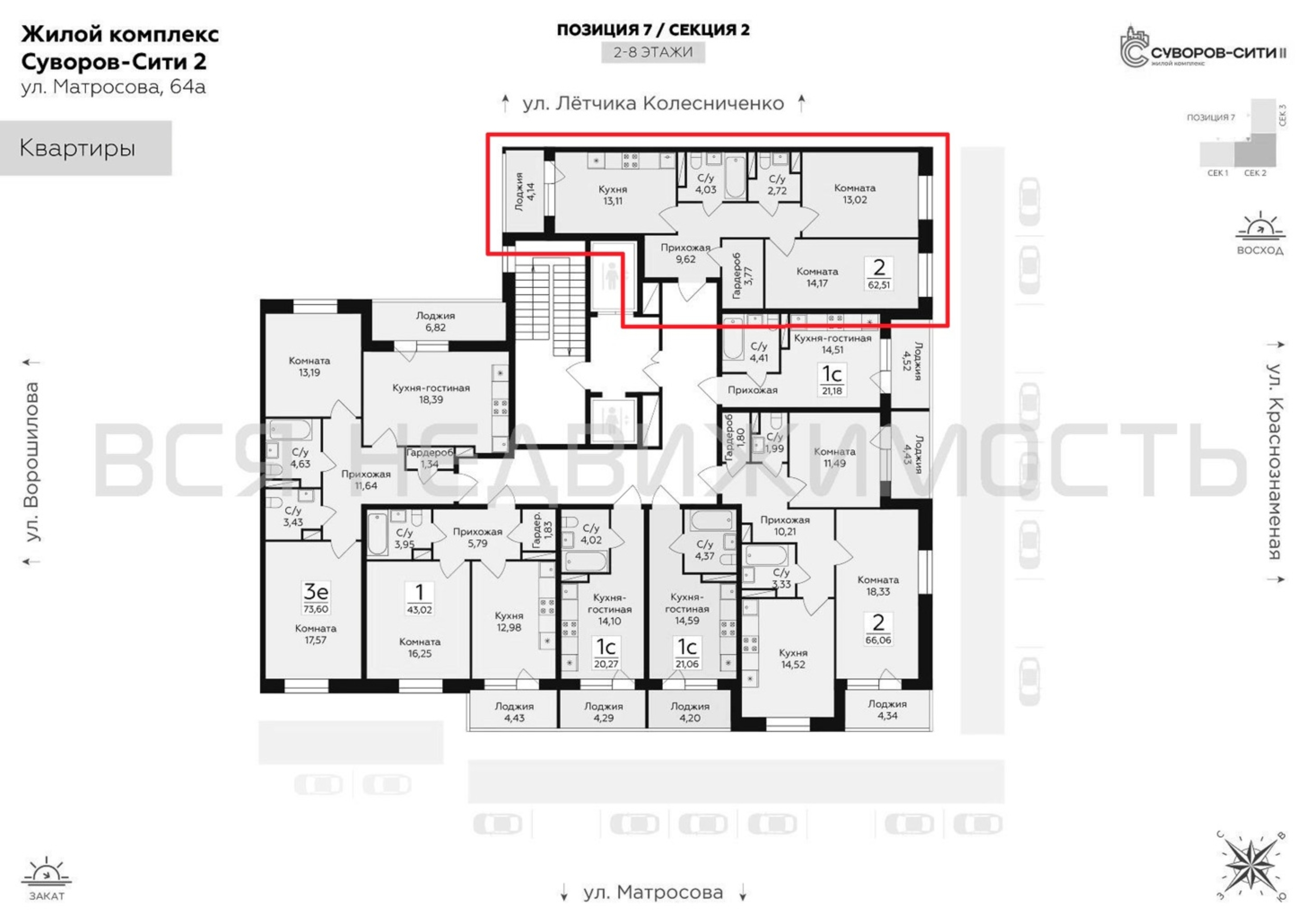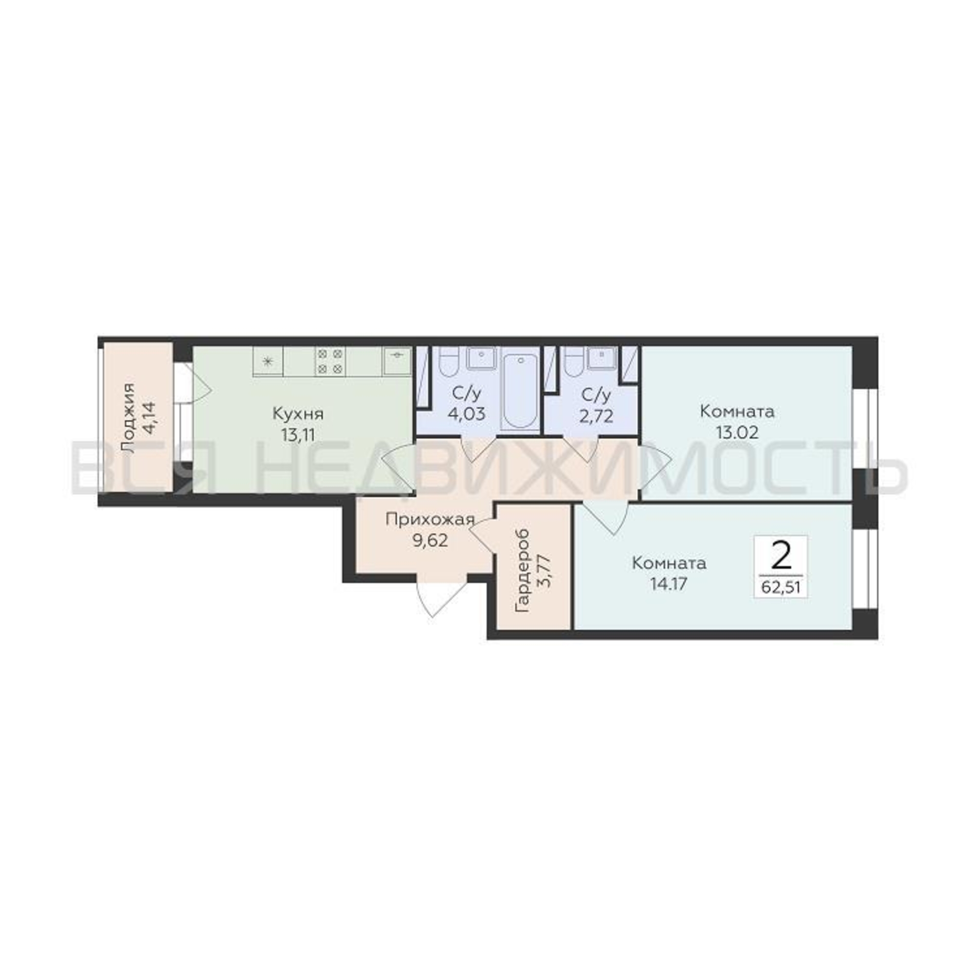 2-комнатная квартира, 62.51 м² 6/10 этаж ID объекта 100131890