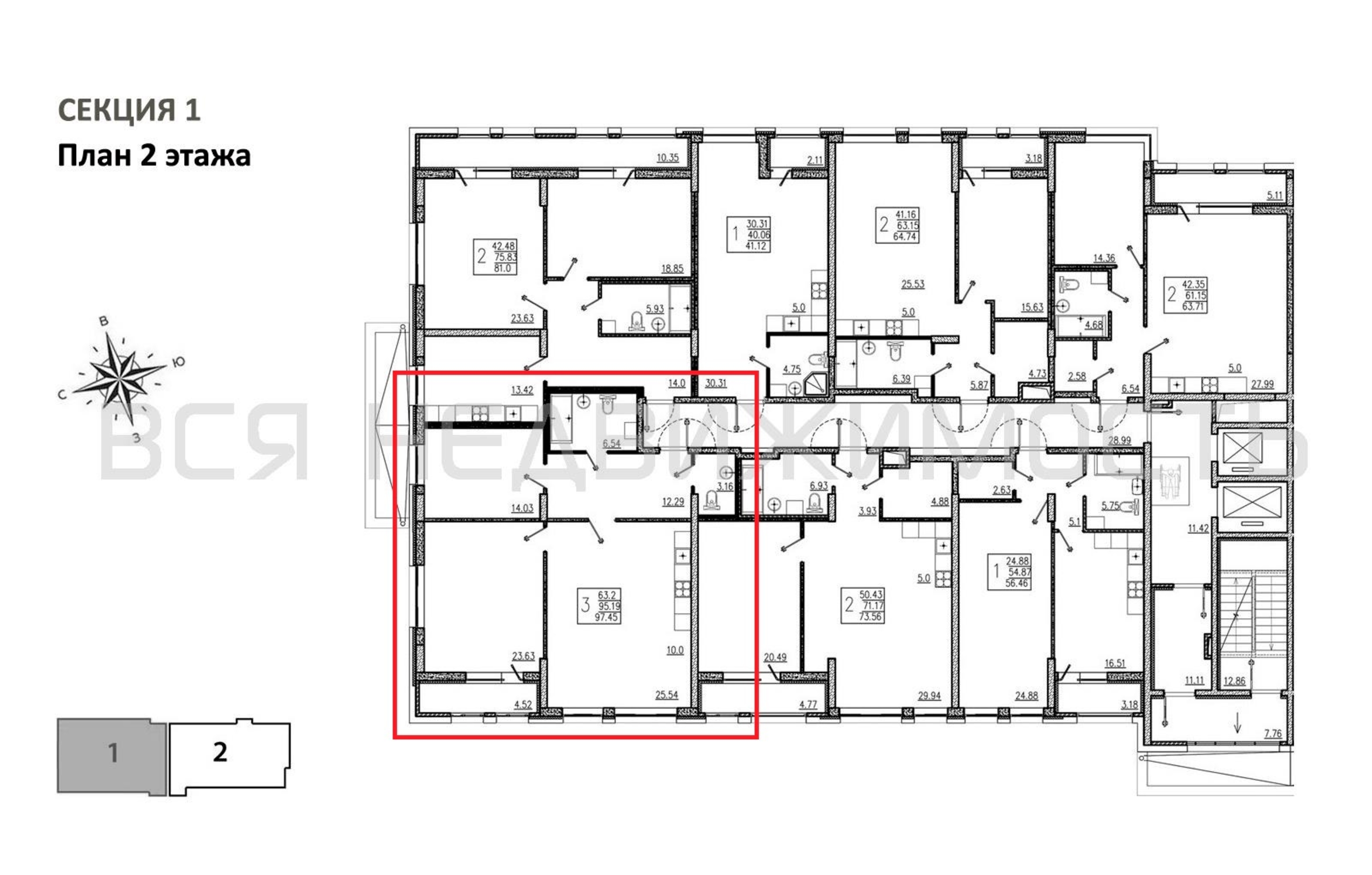 2-комнатная квартира, 97.45 м² 2/11 этаж ID объекта 100131979