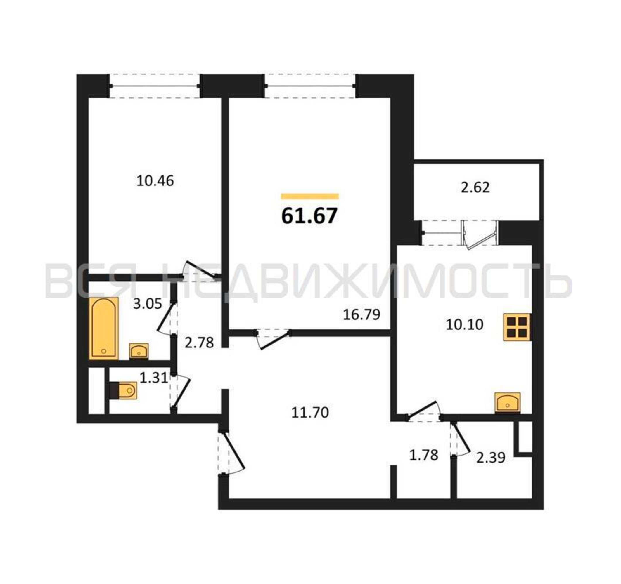 2-комнатная квартира, 61.67 м² 7/10 этаж ID объекта 100132179