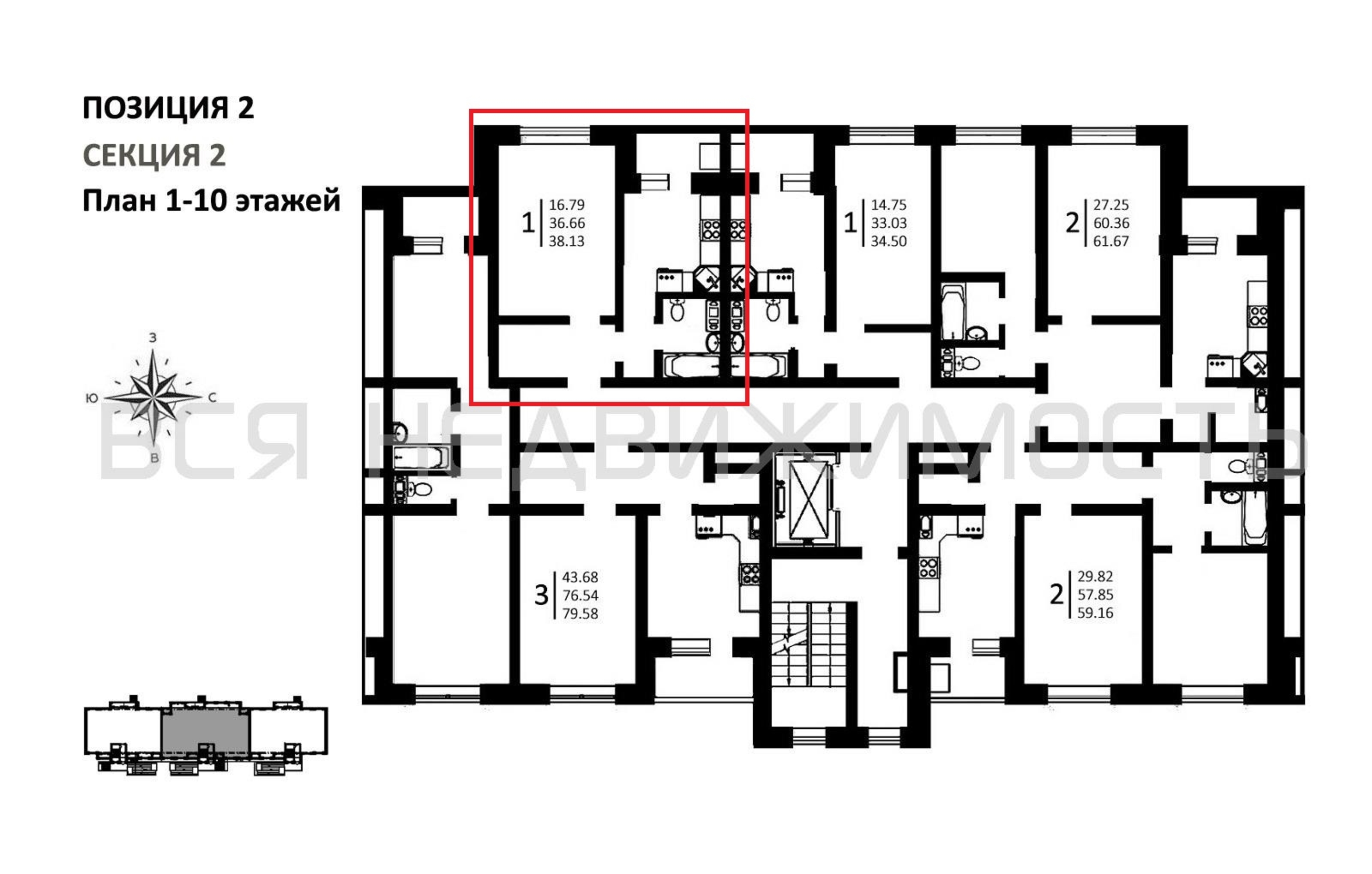 1-комнатная квартира, 38.13 м² 9/10 этаж ID объекта 100132187