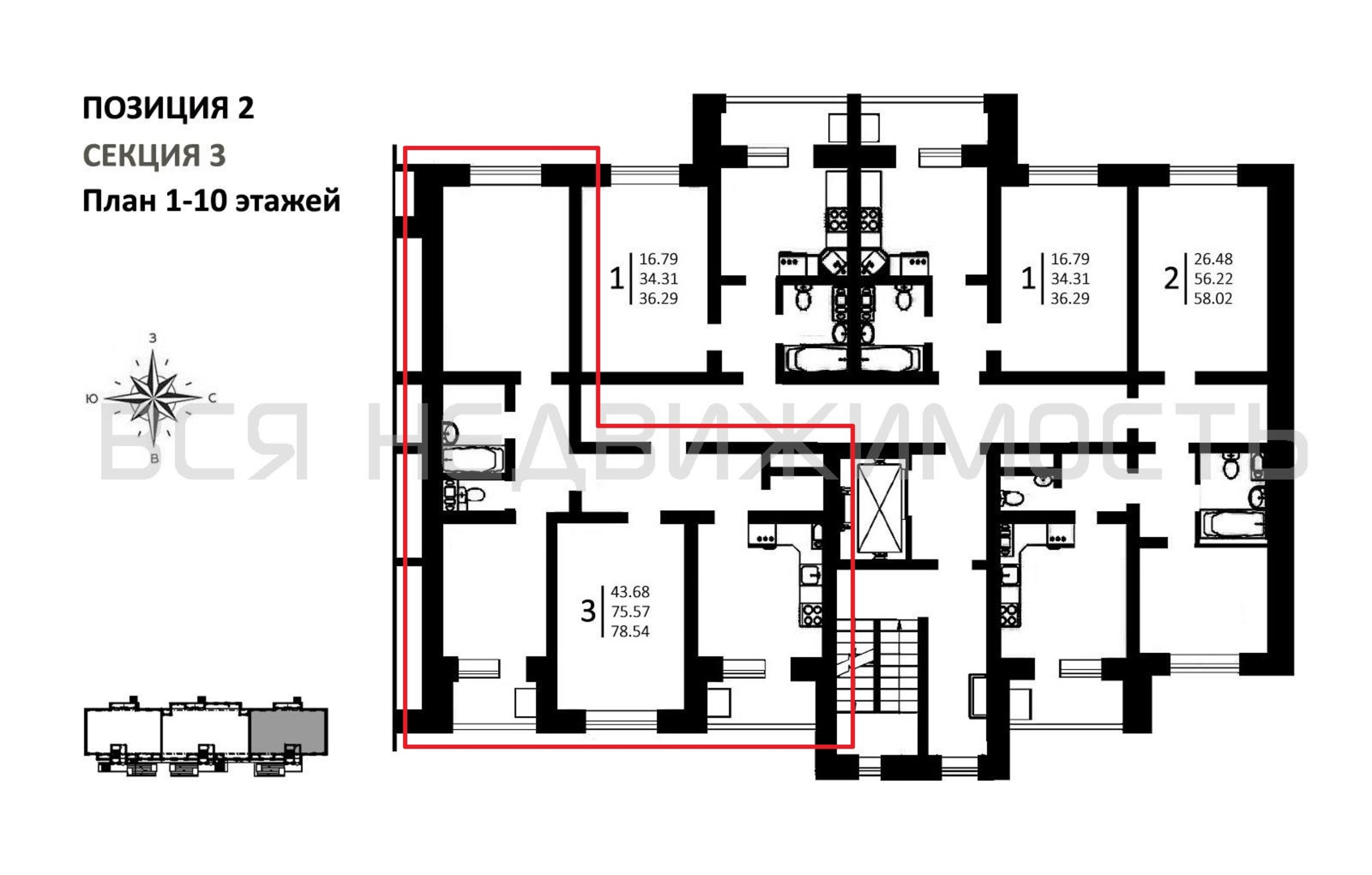 3-комнатная квартира, 78.54 м² 5/10 этаж ID объекта 100132212